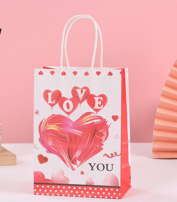 Çantë kartoni me dizenjo zemrash dhe shkrim “Love you”; Përmasat: 15 x 8 x 21 cm