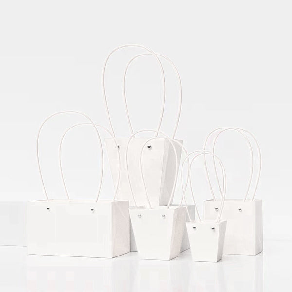 Çantë kartoni për paketimin e luleve në formë trapezi, e bardhë