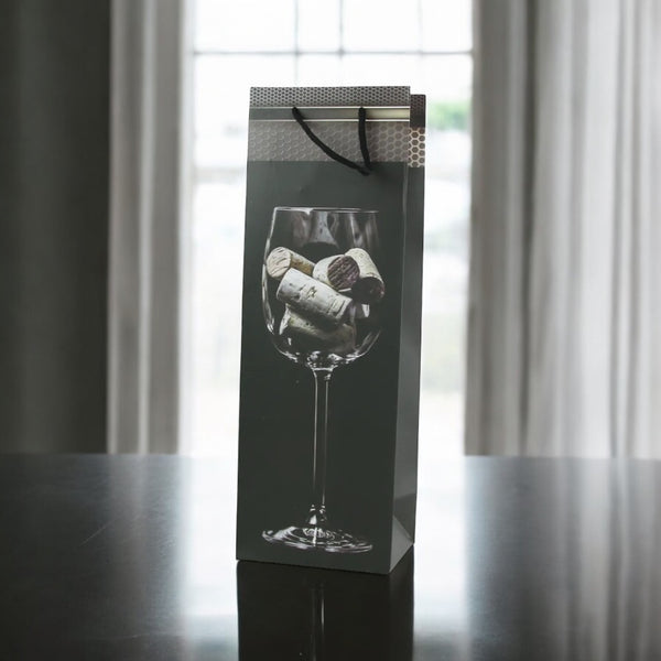 Çantë kartoni për verë ngjyrë e zezë me gotë vere