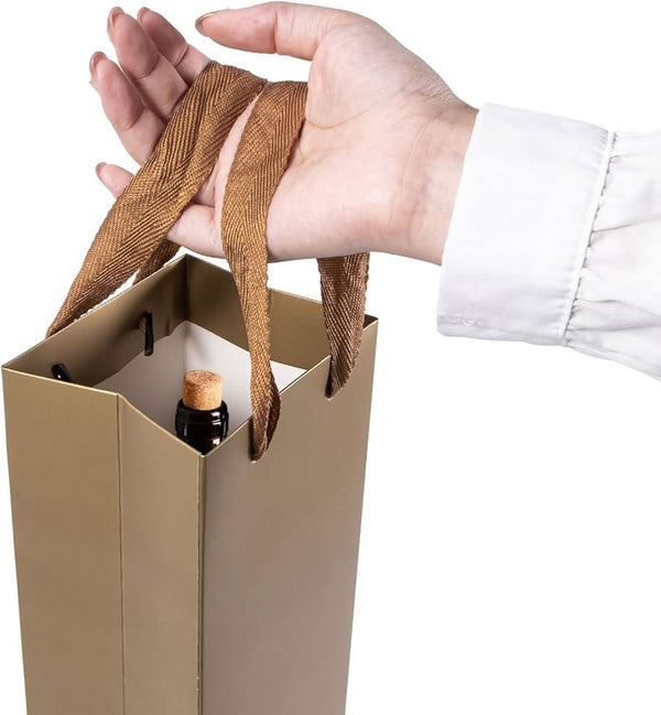 Çantë kartoni për verë ngjyrë kafe; Mbajtëse sateni; Përmasat: 36*12*9cm