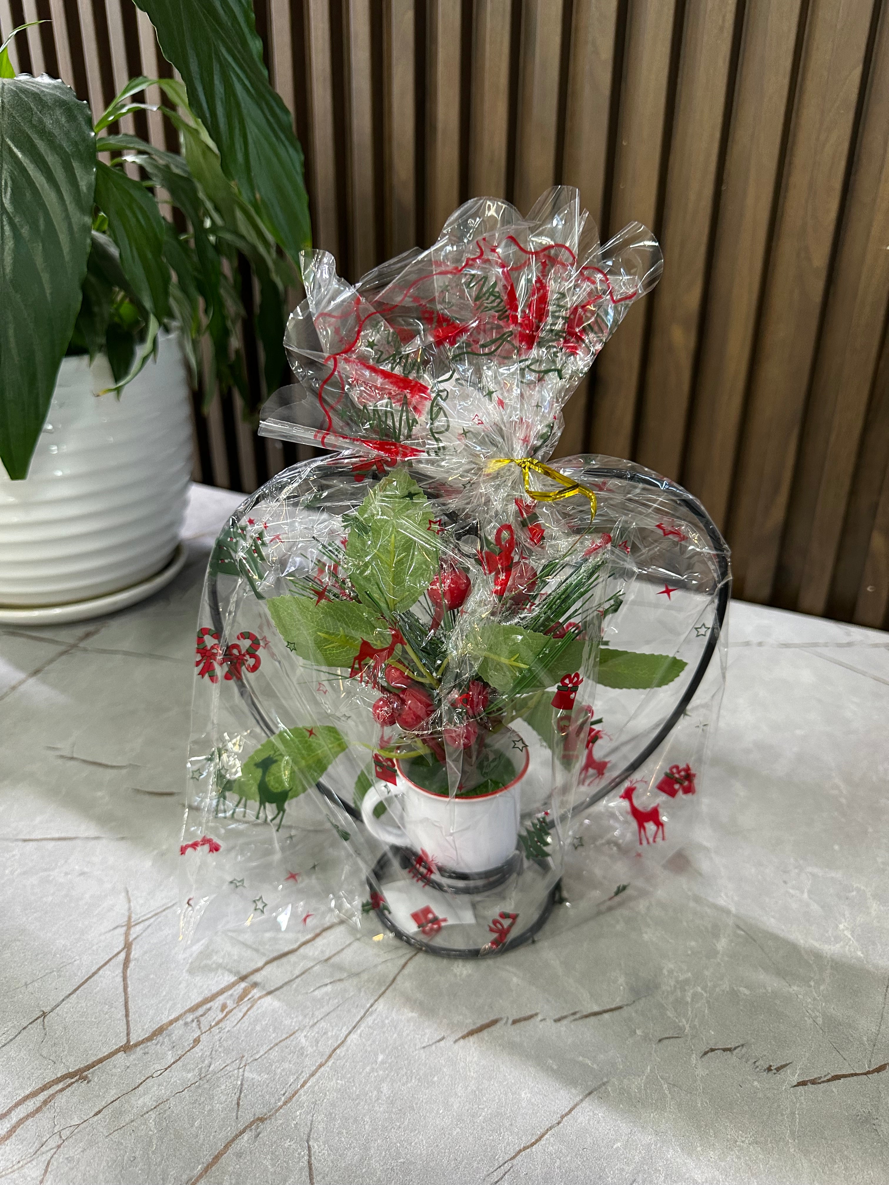 Materiali: Metalike. Në formë zemre. Degëza dekoruese e gjethe dhe kokrra të kuqe. Përmasat: 20 x 8 x H21.5 cm.