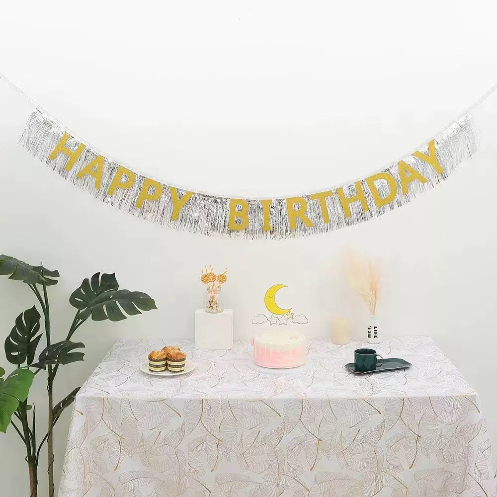 Dekor “Happy Birthday” shumëngjyrësh, i përshtatshëm për zbukurimin e festave dhe ditëlindjeve. Përfshin: Shkronjat + litarin.