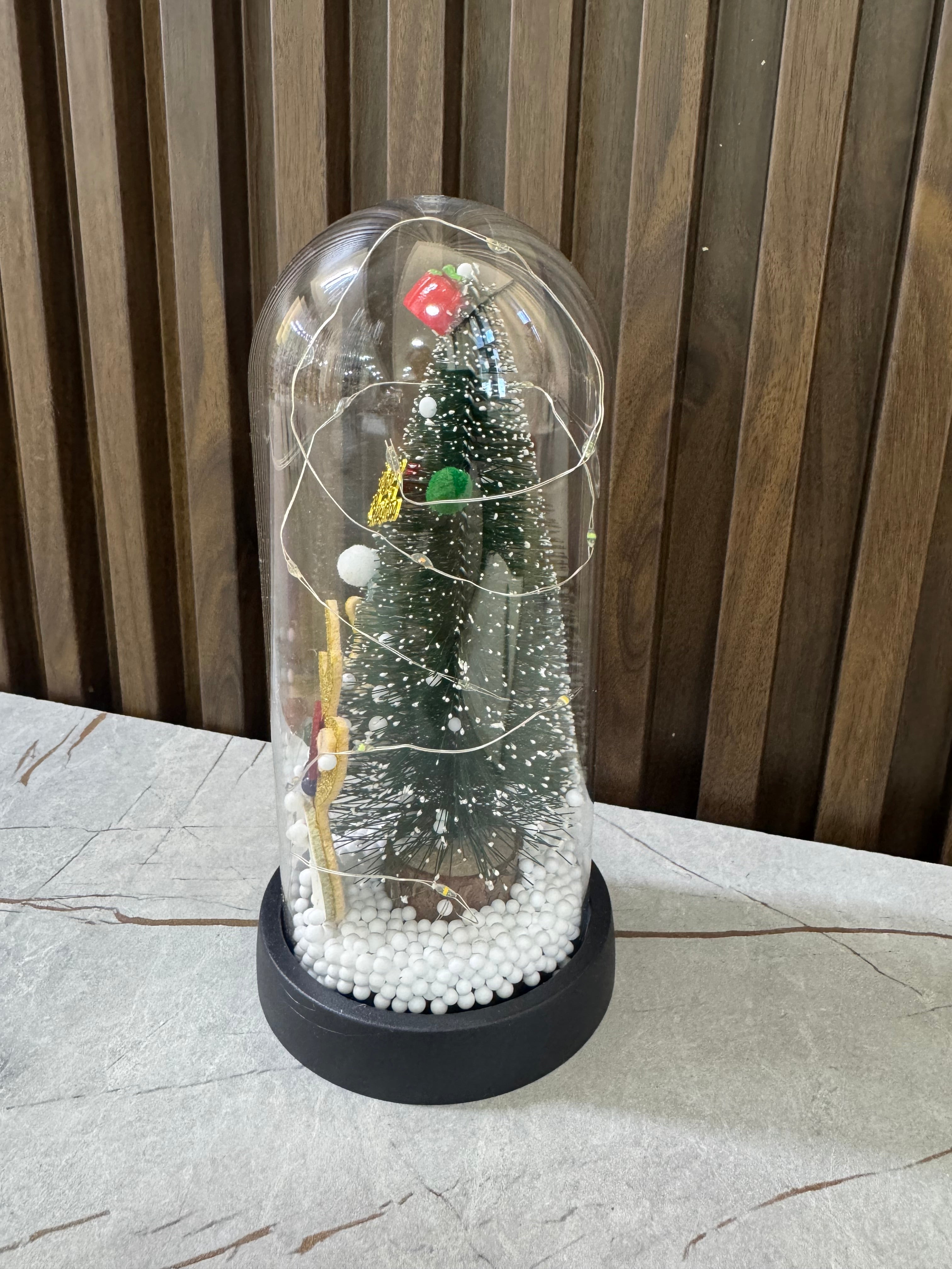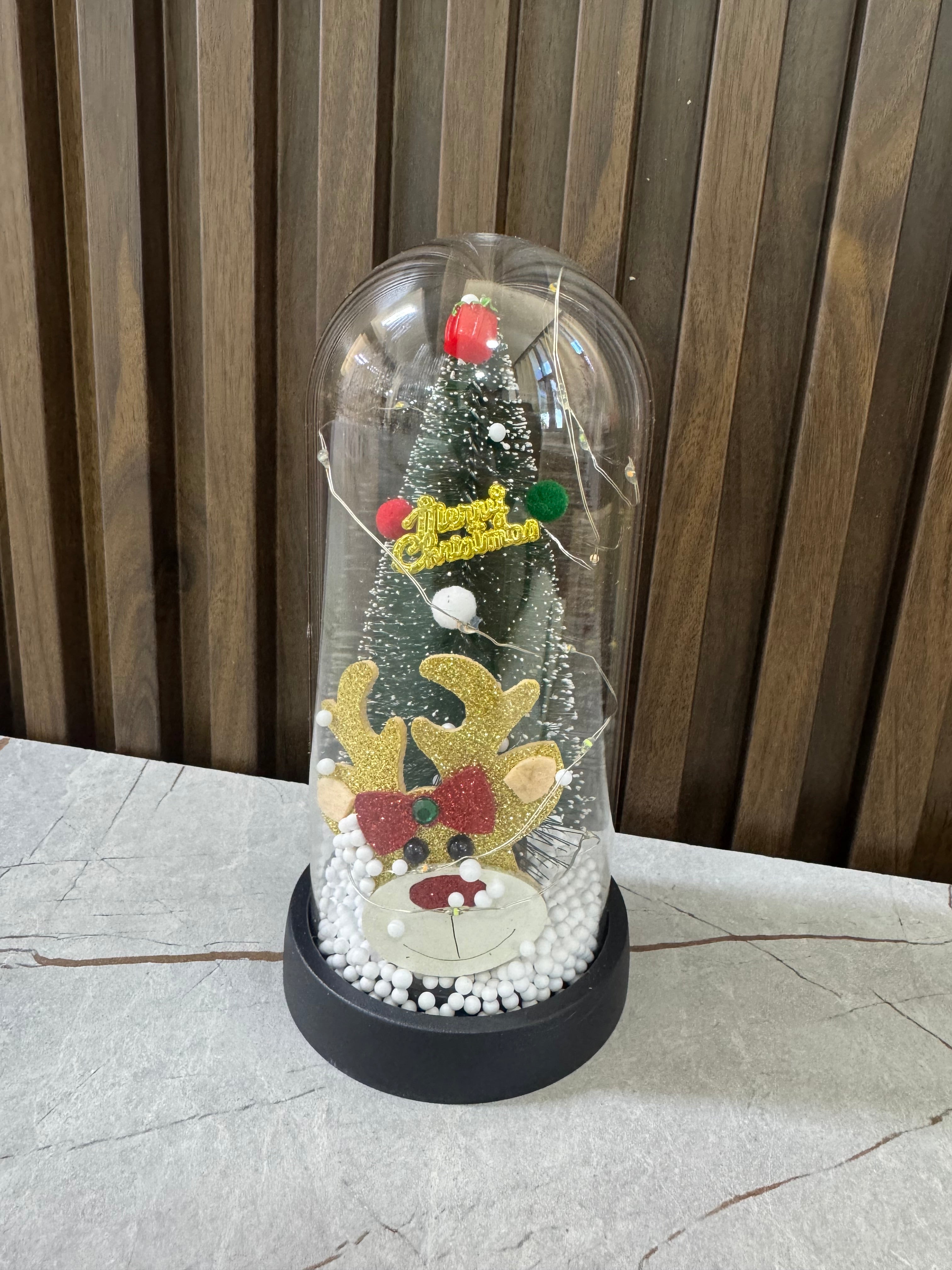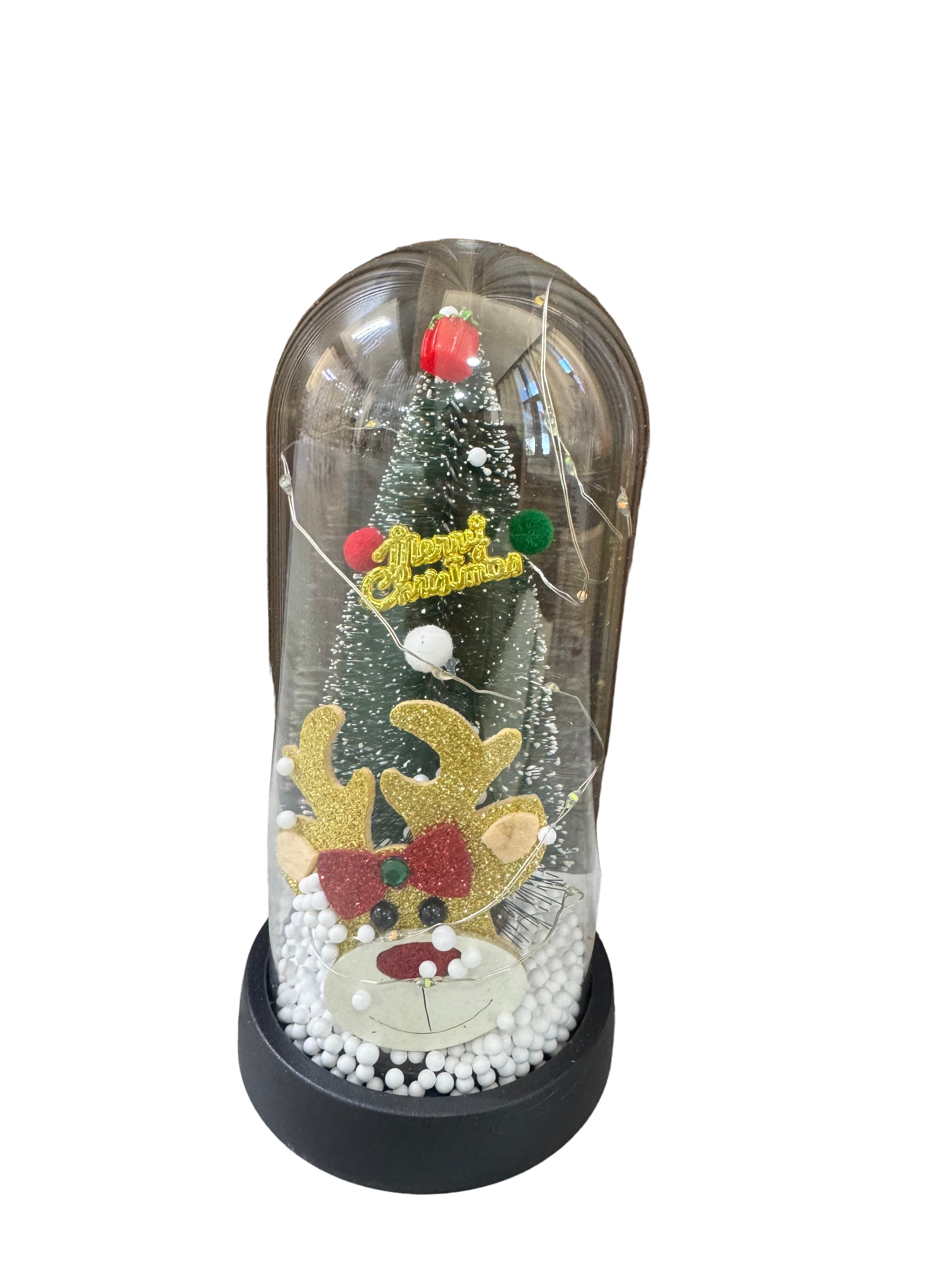 Dekor festiv në kupolë qelqi me bredh dhe drerë, i zbukuruar me detaje “Merry Christmas”. Ideal për zbukurimin e shtëpisë dhe krijimin e atmosferës festive. Përmasa: 10 x 20 cm....