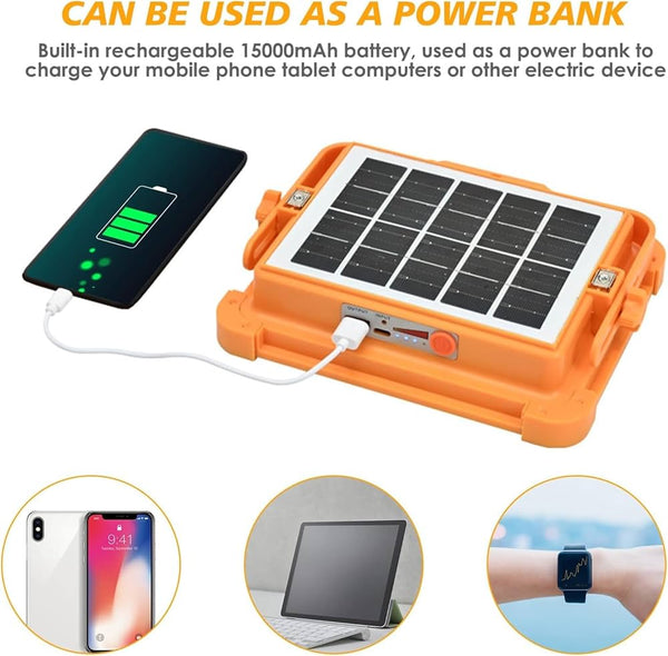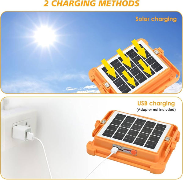 Dritë solare LED me 4 burime drite me mbajtëse portokalli me panel diellor IP66; Me ndriçim të ngrohtë, të ftohtë, natyral dhe me drita blu e të kuqe; Ideale për...