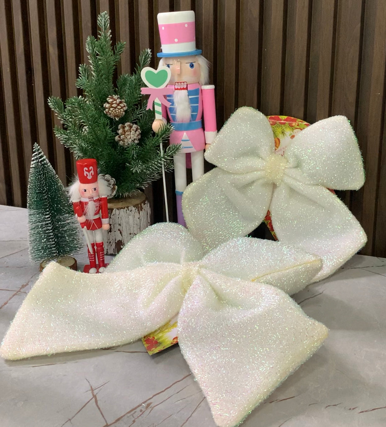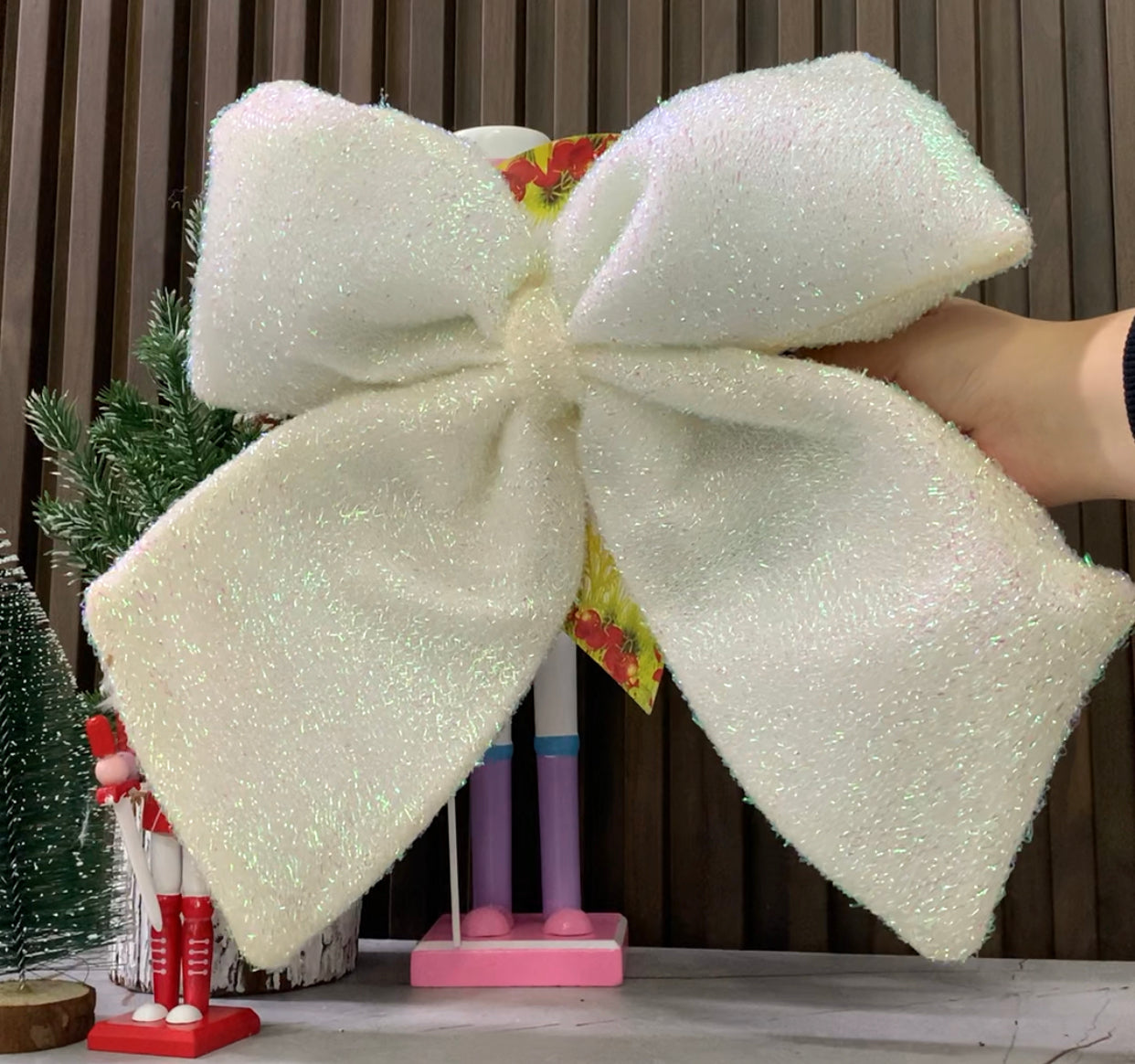Fjongo e bardhë me shkëlqim për zbukurimin e pemës së fundvitit 30 cm