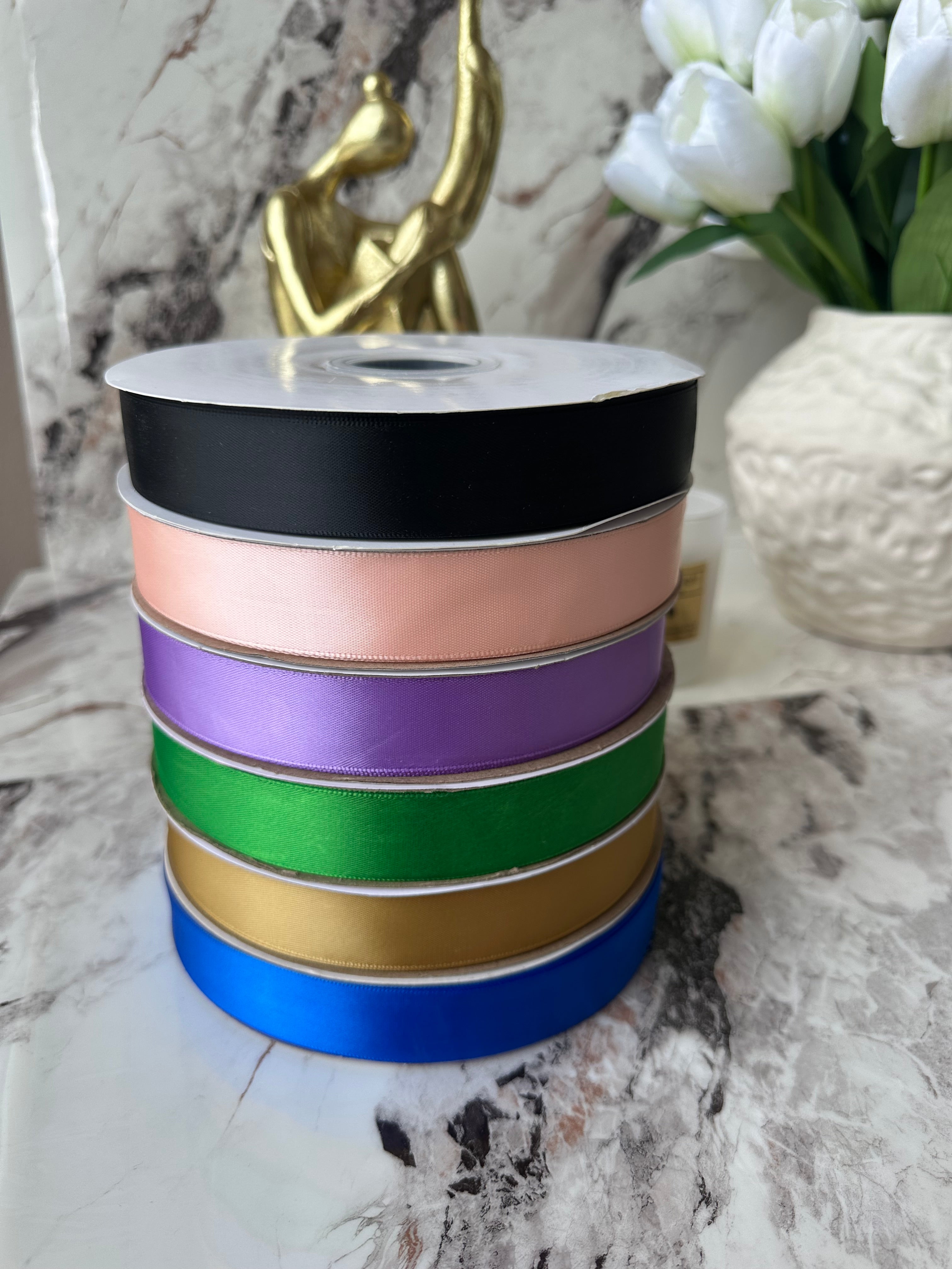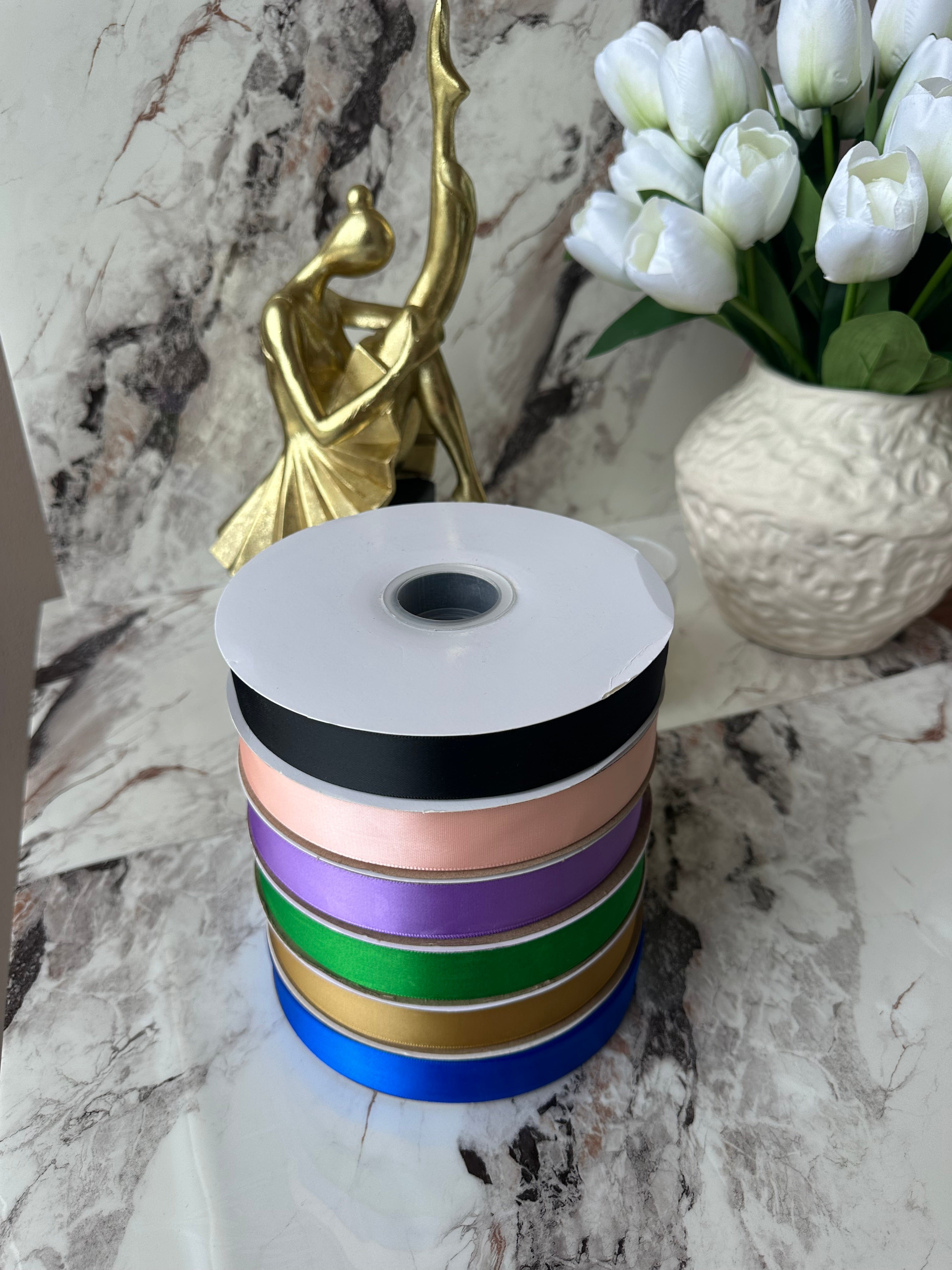 Fjongo sateni për paketim dhuratash me trashësi 3 cm; Ngjyrat: E zezë, e bardhë, blu, rozë