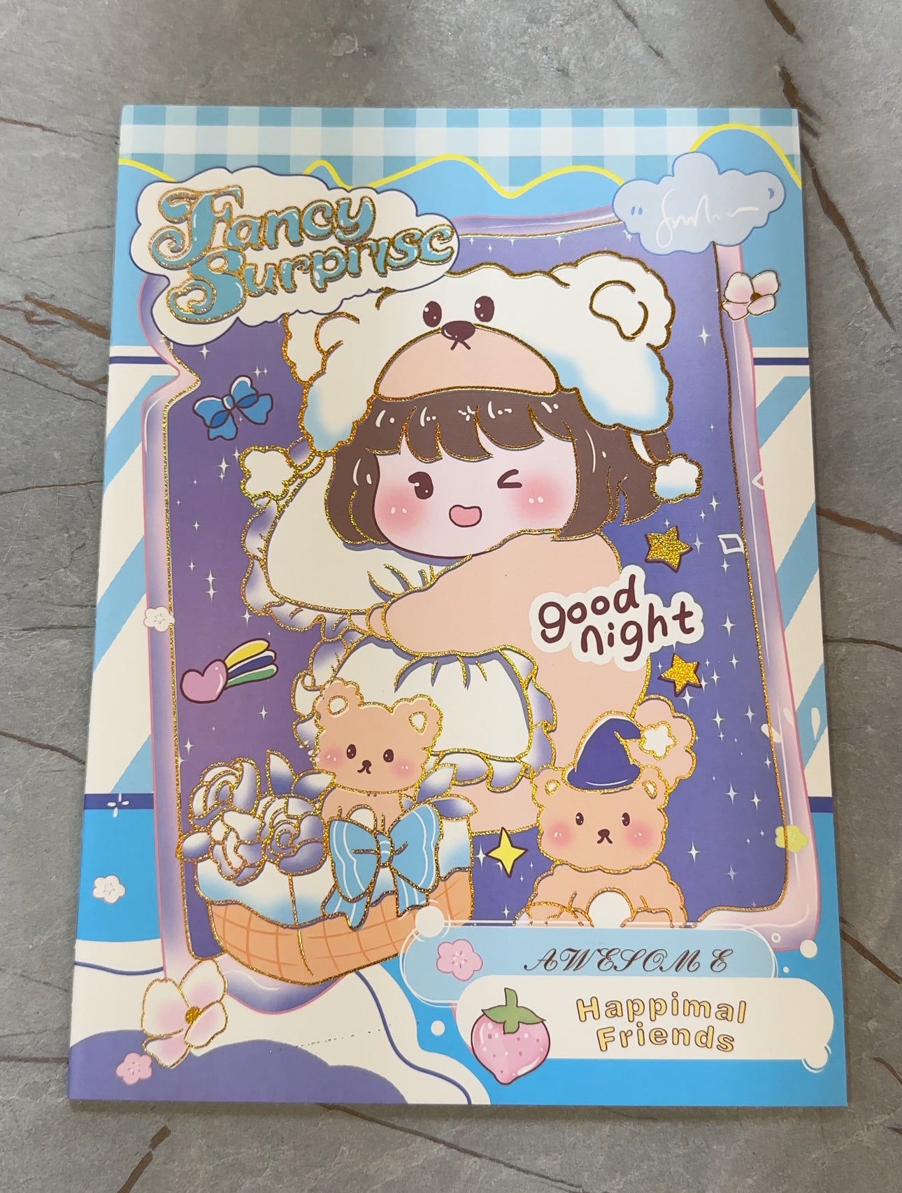 Fletore me vija me përmasa 18.4 cm x 25.8 cm me numër faqesh 36, dizenjo të ndryshme në ngjyrën pjepër, blu, gri, lejla