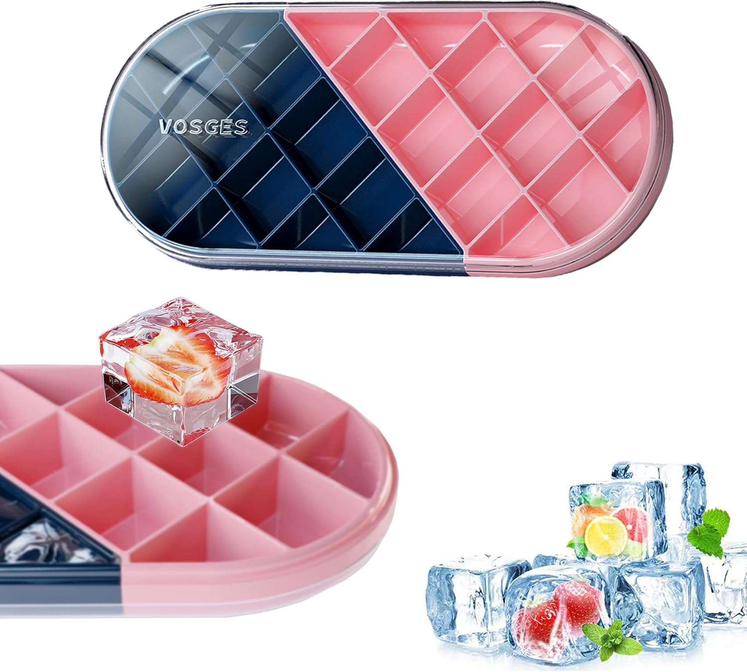 Formë akulli me mbajtëse e kapak transparent, formë trapez; Materiali: Plastike; Ngjyra: E verdhë me rozë, e verdhë me mente, e verdhë me blu; Përmasat si në foto: