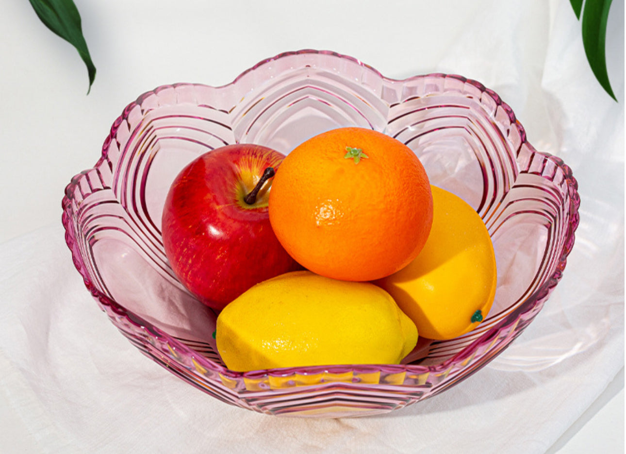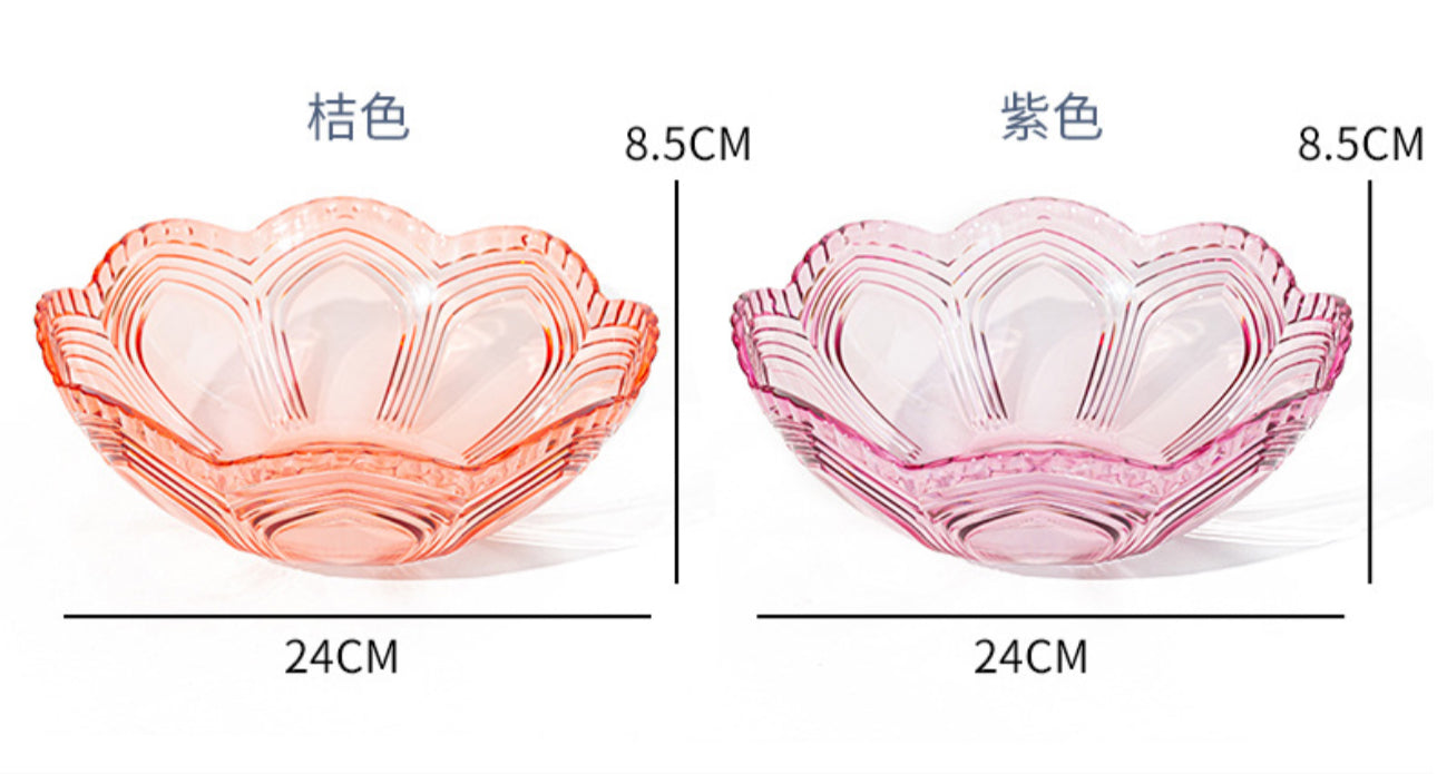 Frutiere akriliku me dizenjo pikash; Ngjyra: Transparente e kuqe ose vishnje; Përmasat si në foto: