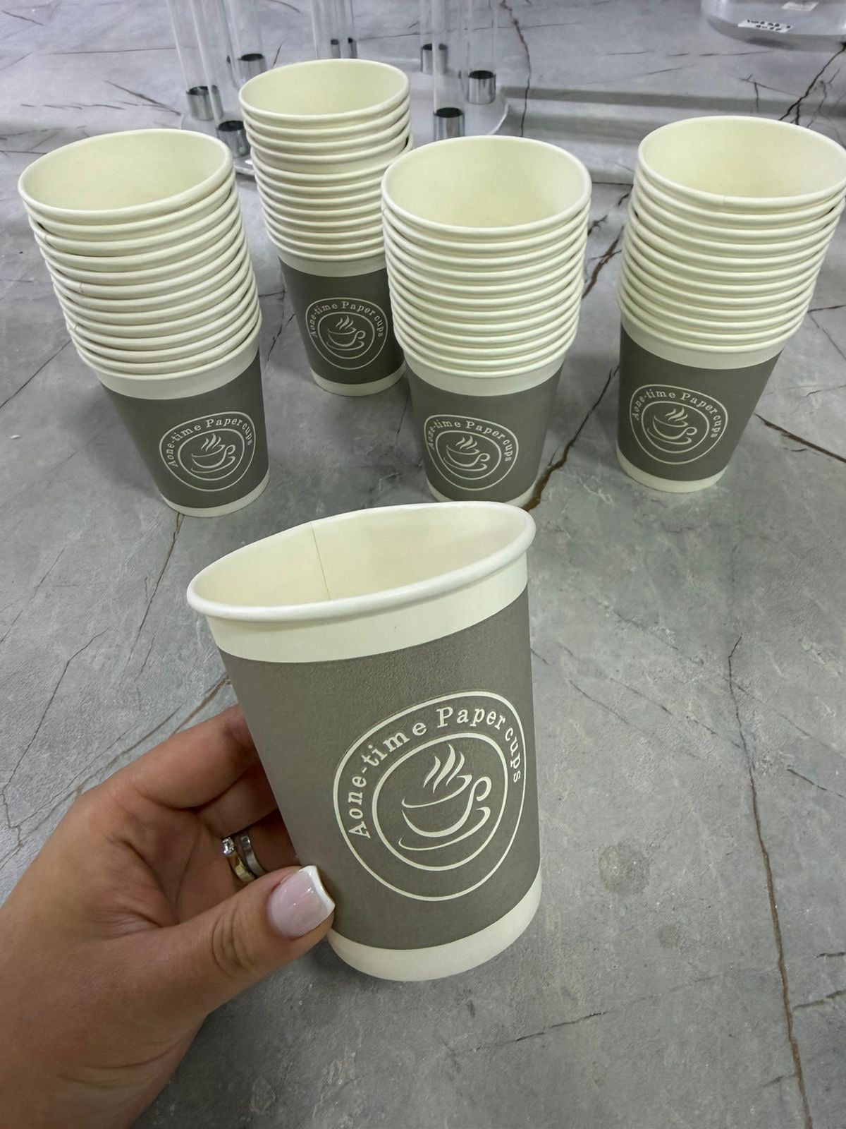 Gota kartoni pijesh gri me ikonë kafesh; 250 ml; 50 copë