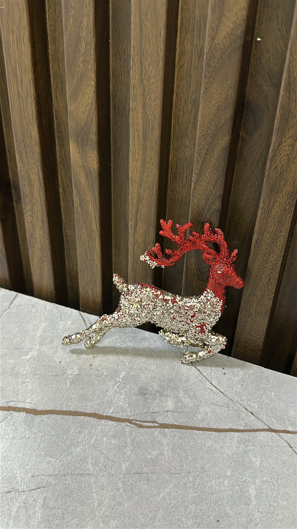 Dekor elegant në formë dreri me shkëlqim ari dhe të kuq, i përshtatshëm për zbukurimin e shtëpisë gjatë festave të fundvitit. Ideale për pemën e Krishtlindjes, tryezën apo këndet dekorative,...