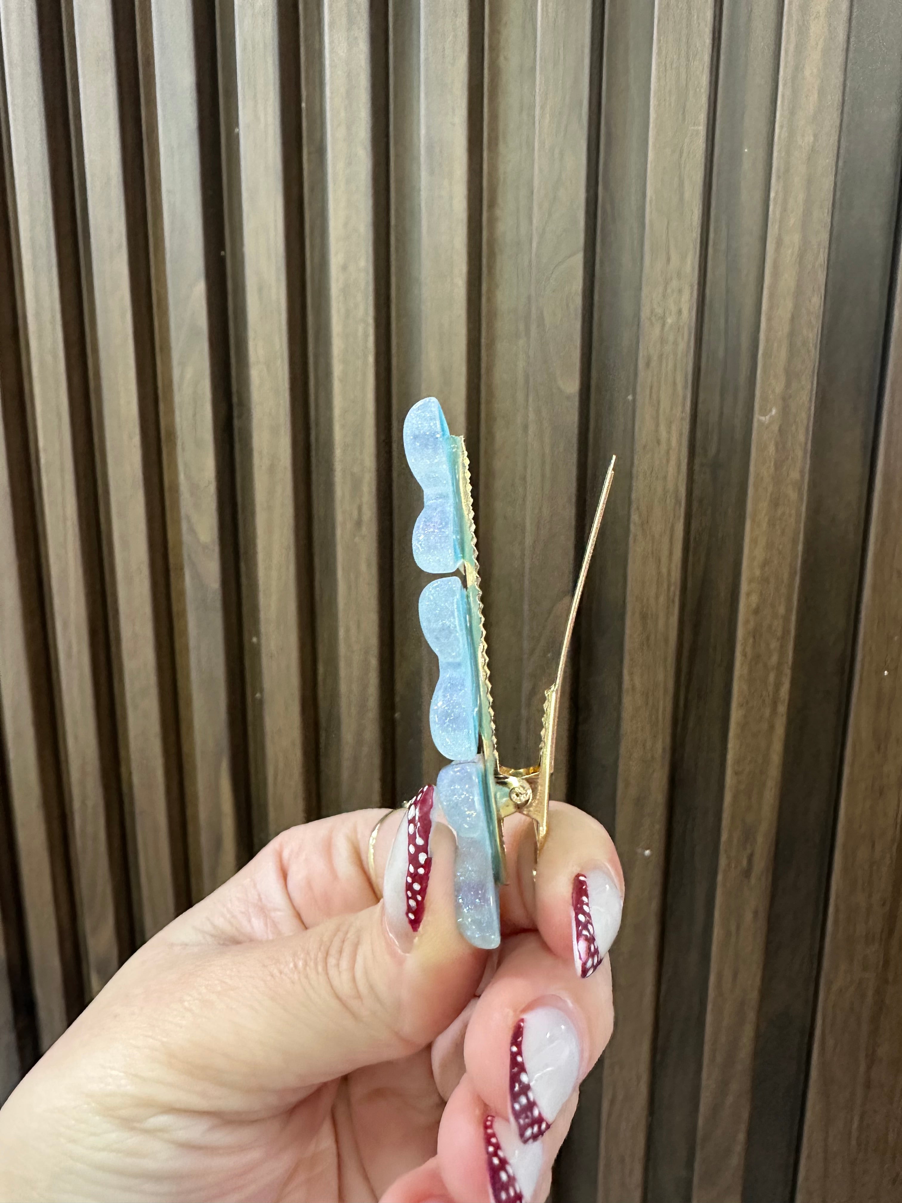 Kapëse flokësh me flutura shkëlqyese, set 2 copë në ngjyra pastel