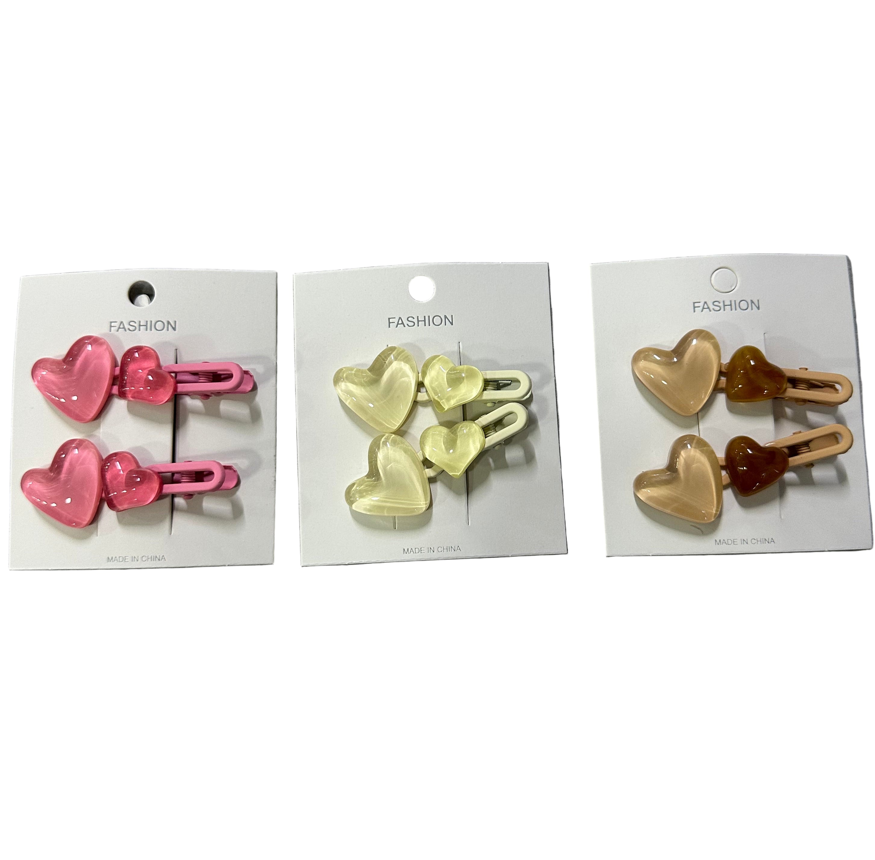 Set kapësesh flokësh me forma zemre në ngjyra pastel. Të lehta dhe ideale për çdo stil flokësh. Ngjyra: E rozë, e bardhë, e kafe. Sasia: 2 Pcs. E përshtatshme: Për...
