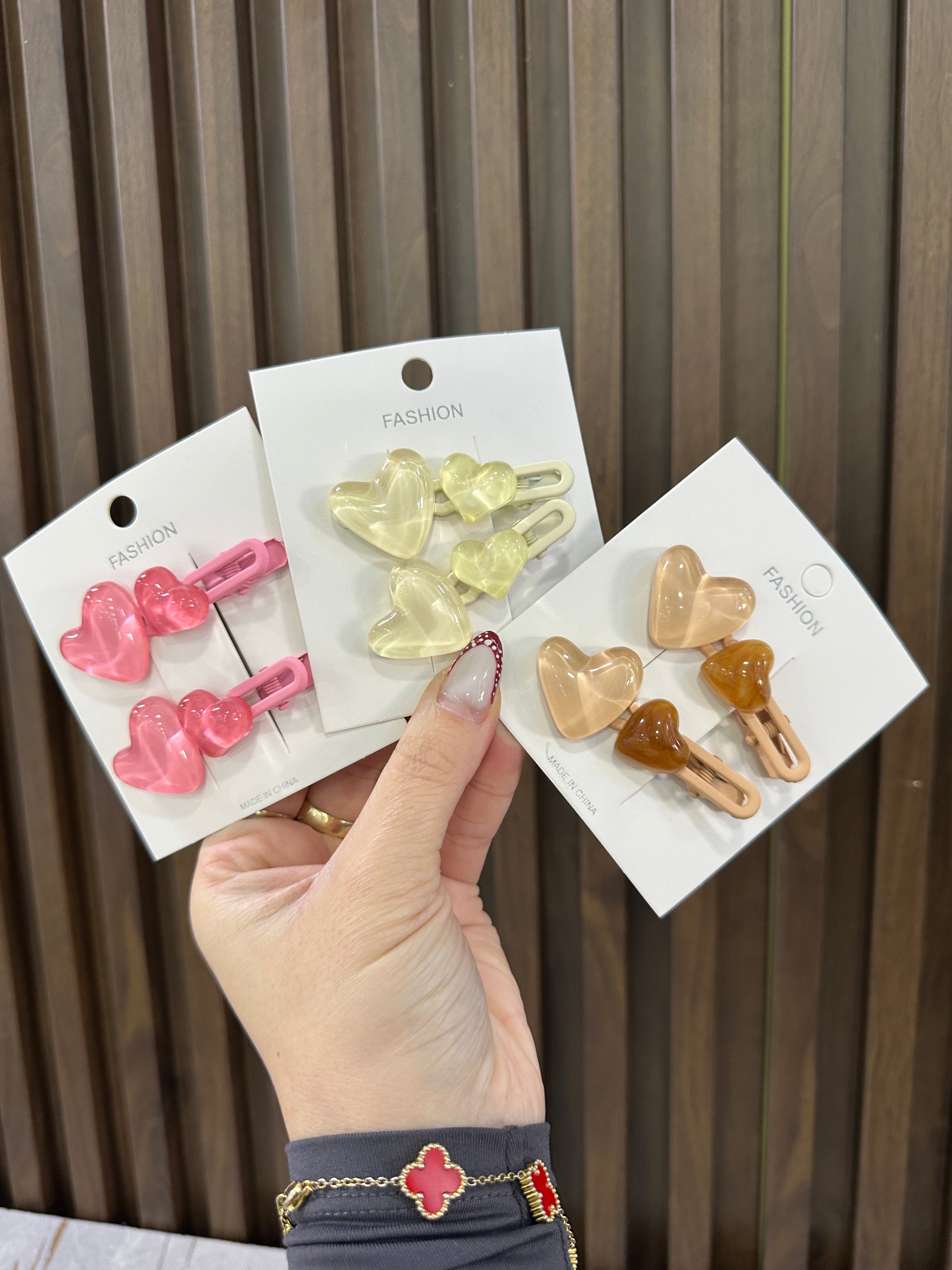 Kapëse flokësh me forma zemre, set 2 copë në ngjyra pastel