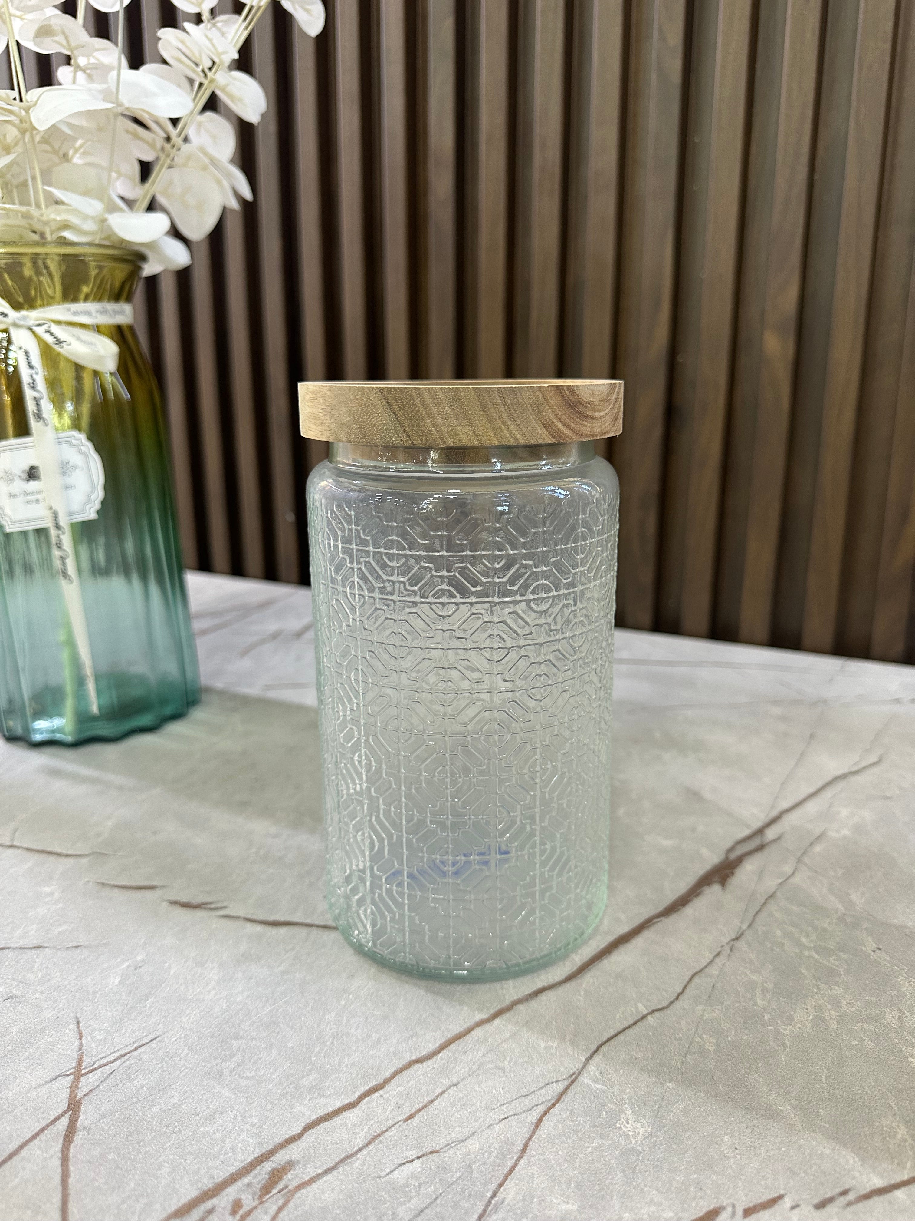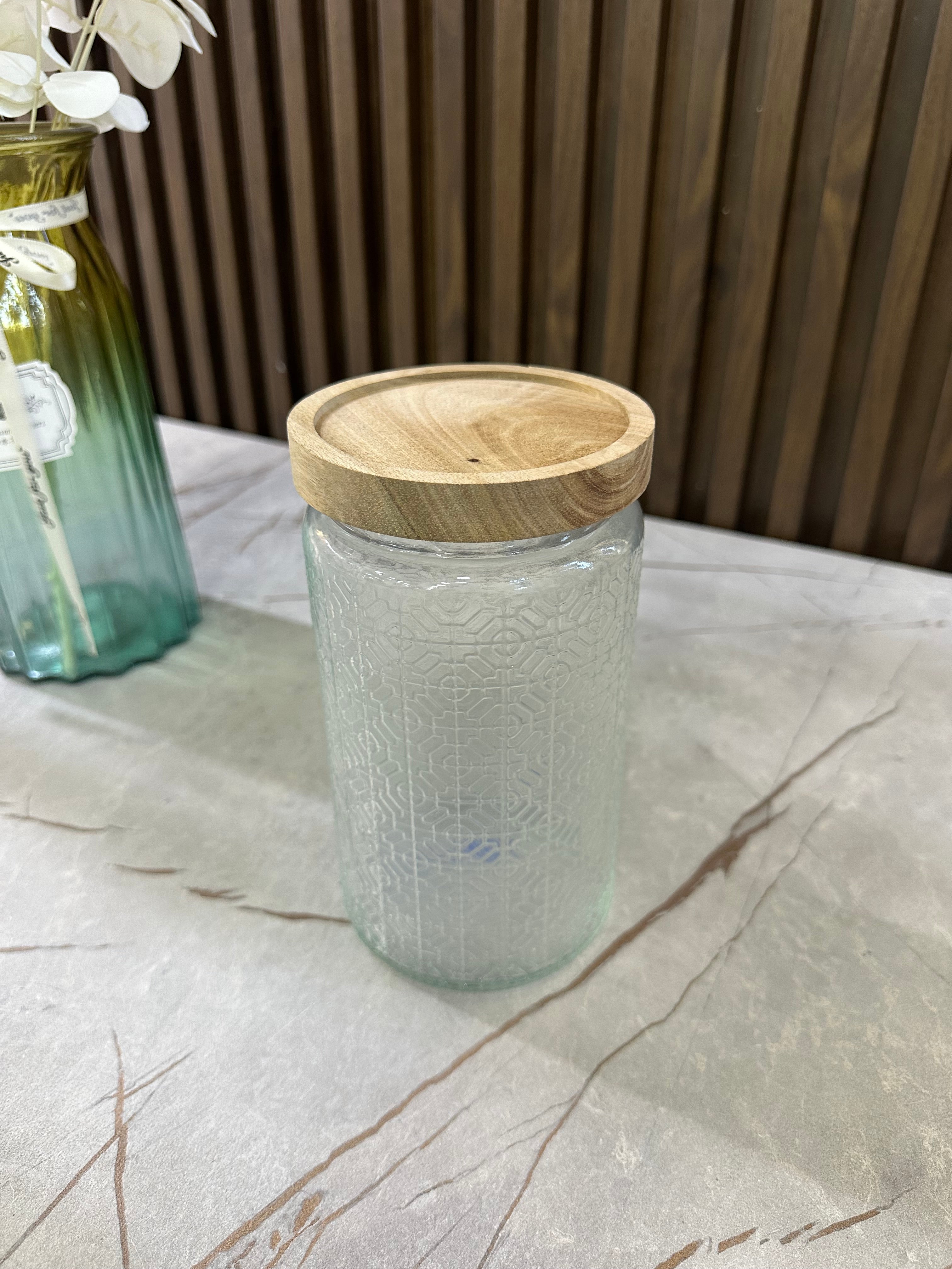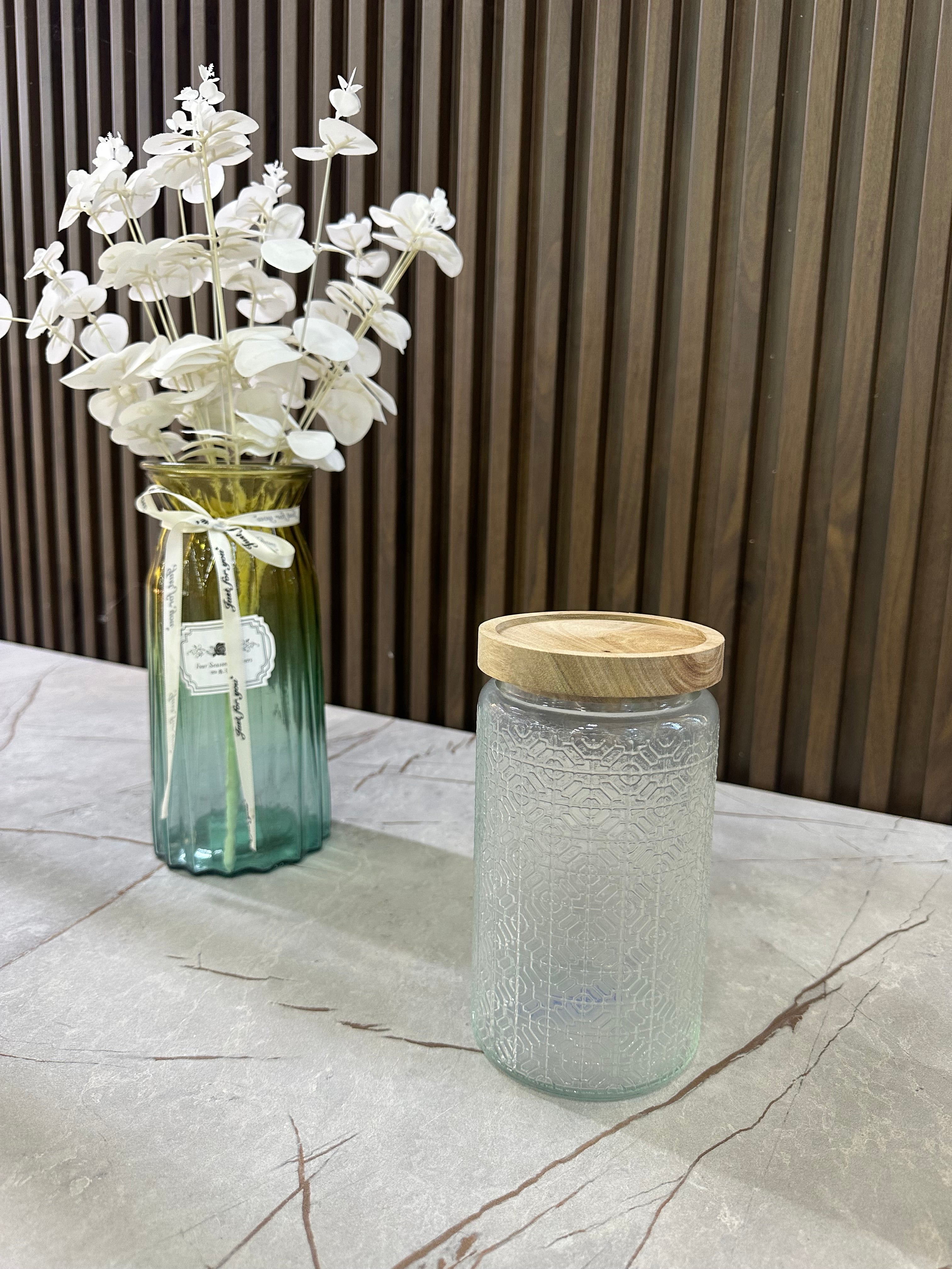 Materiali: Qel + dru. Ngjyra: Transparente. Përmasat: 9.5xH18cm.