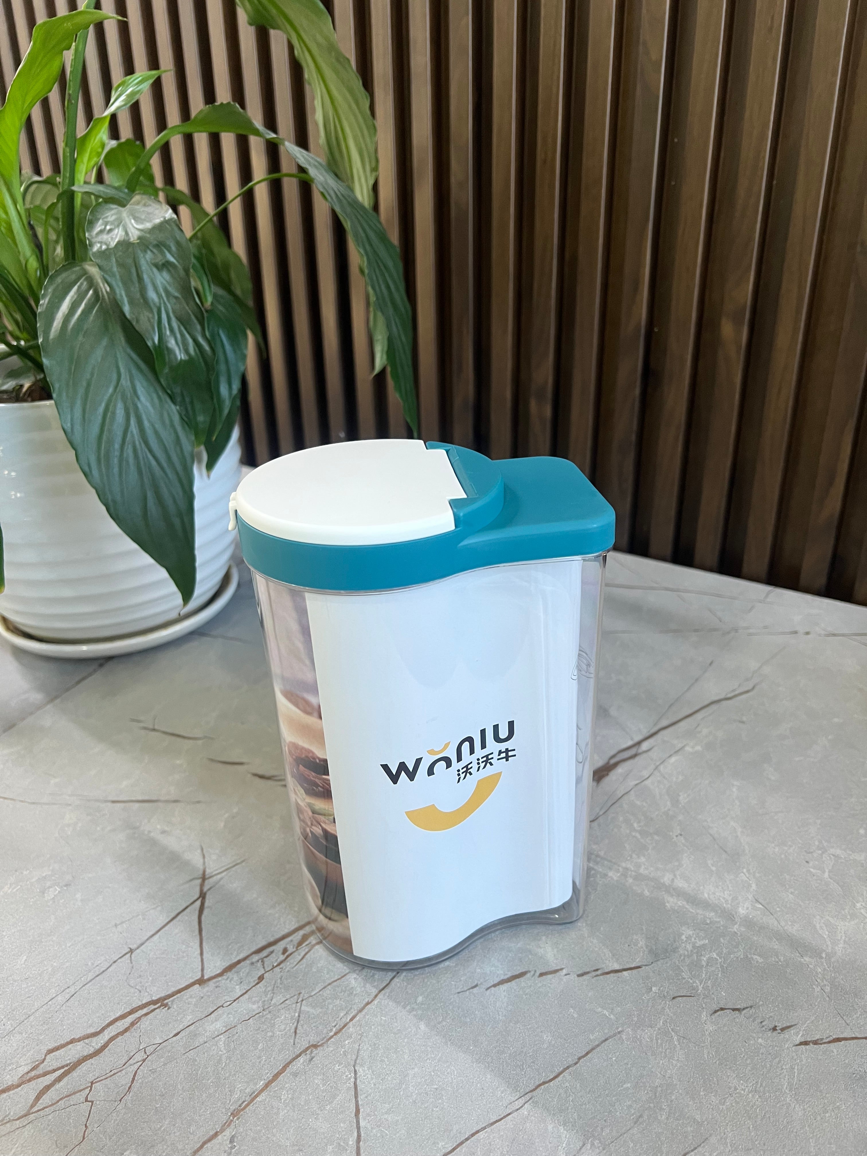 Kontenitor ushqimor plastik me kapak dozues për ruajtje të thatë