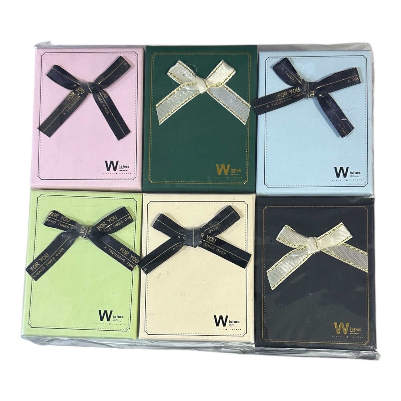 Kuti paketimi për bizhuteri masë e mesme me kontur dhe shkrim “Wishes”; Ngjyrat: 2 nuanca jeshileje, rozë, krem, blu, e zezë; Përmasat si në foto: