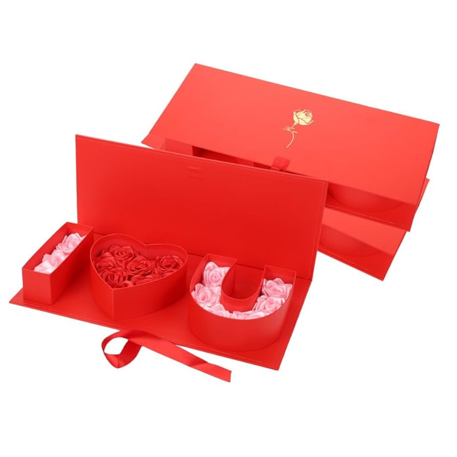 Kuti paketimi për dhurata ose lule me kapak me trëndafil e hapje✨ Me shkrim “I ❤️ U” në ngjyra e kuqe, e zezë, e bardhë, rozë🥀