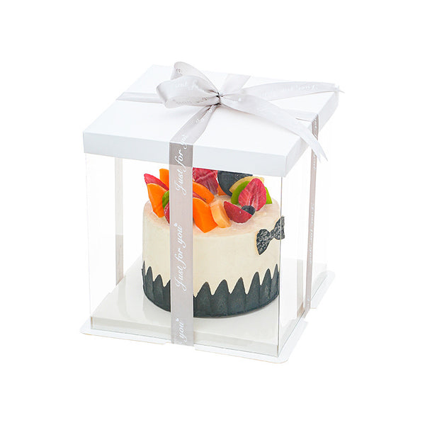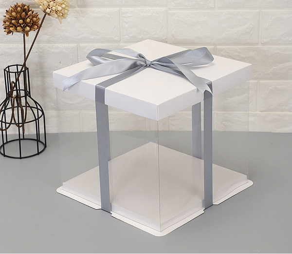 Kuti paketimi tortash karton + pjesë plastike e tejdukshme, katrore e bardhë