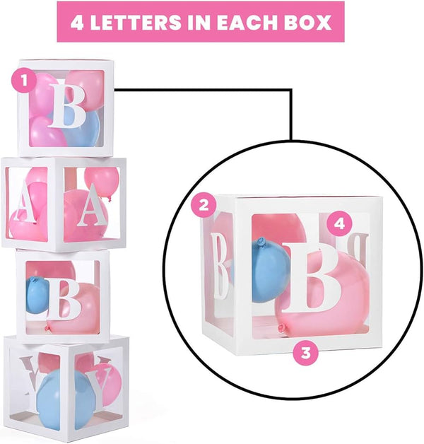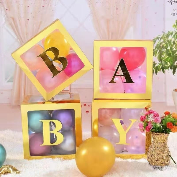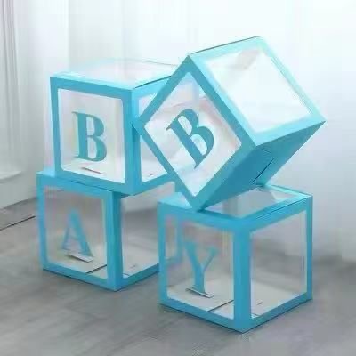 Kuti për baby shower; Transparente e me shkronja “Baby”; Përmasa: 30 cm x 30 cm ; E bardhë, rozë, blu, gold