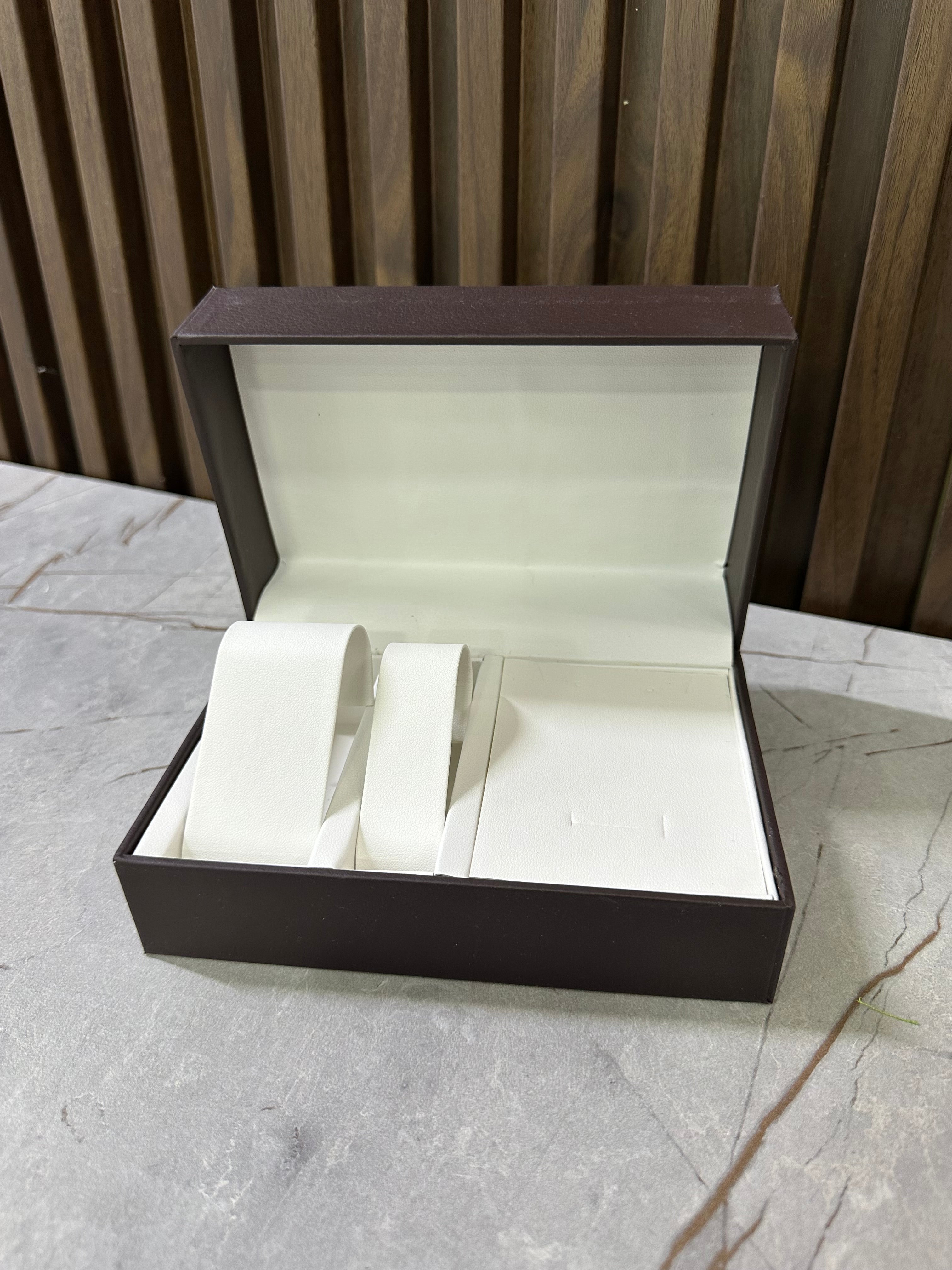 Kuti për ora dhe byzylykë me brendësi të bardhë. Kombinim i zi e bardhë për paraqitje të pastër dhe dhurata speciale. Ngjyra: Kafe e pjekur. Përmasa: 11 x 16.4 x...