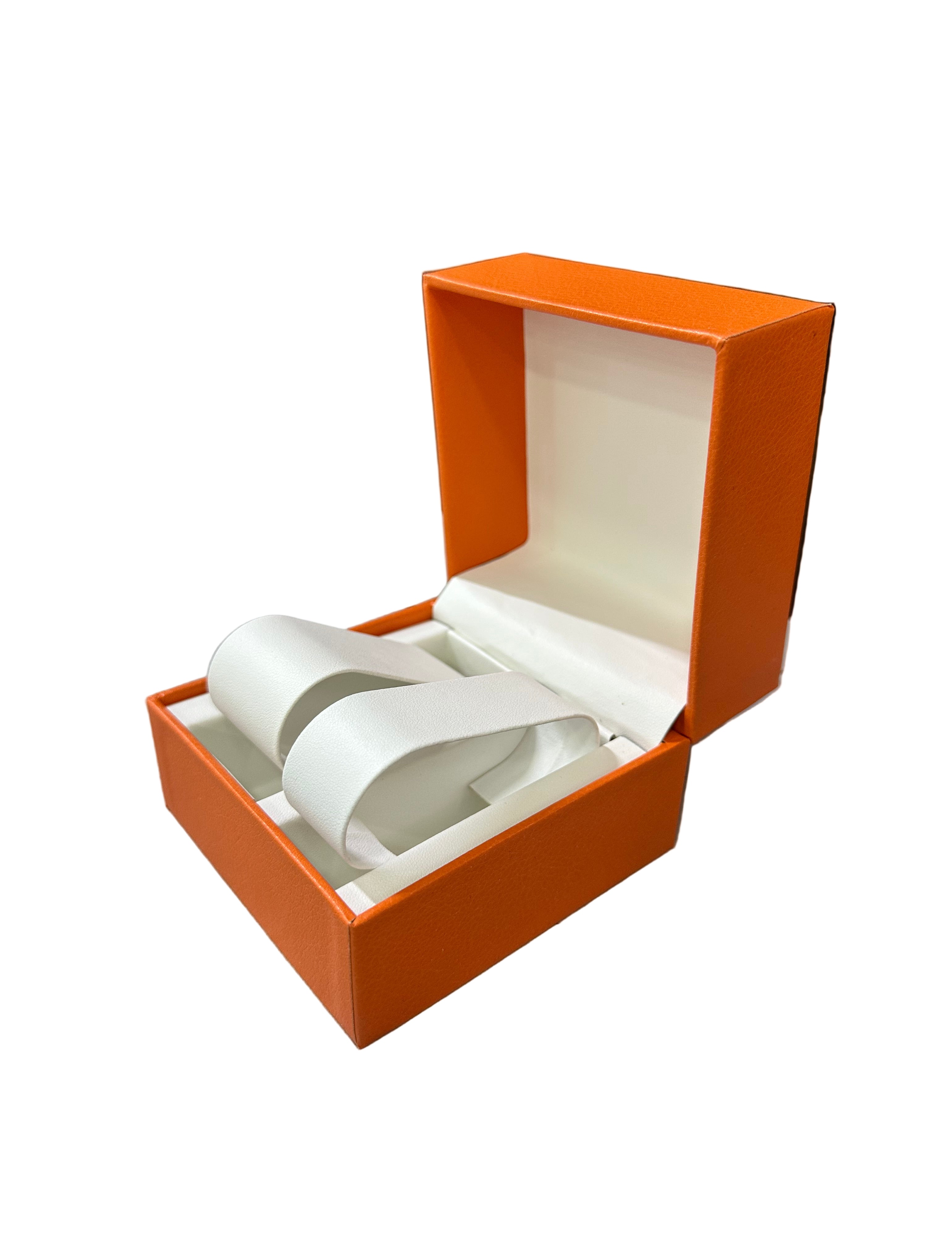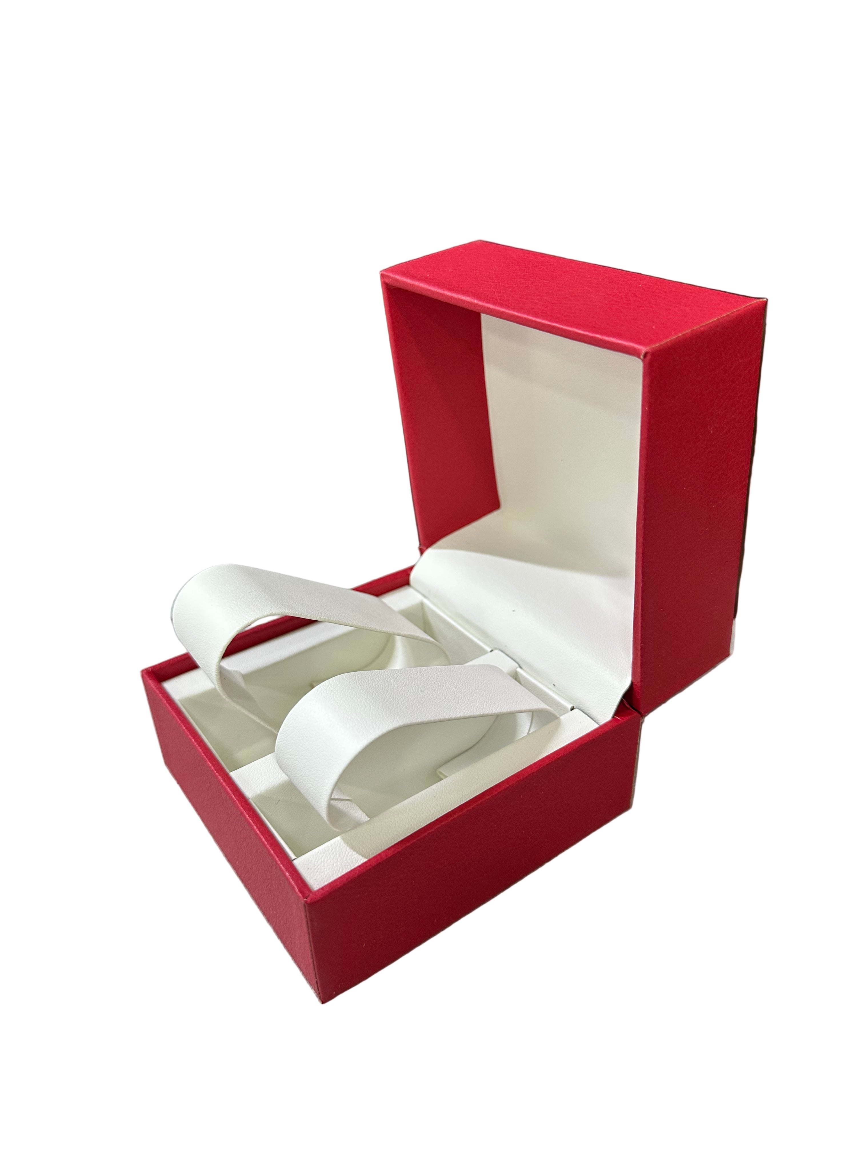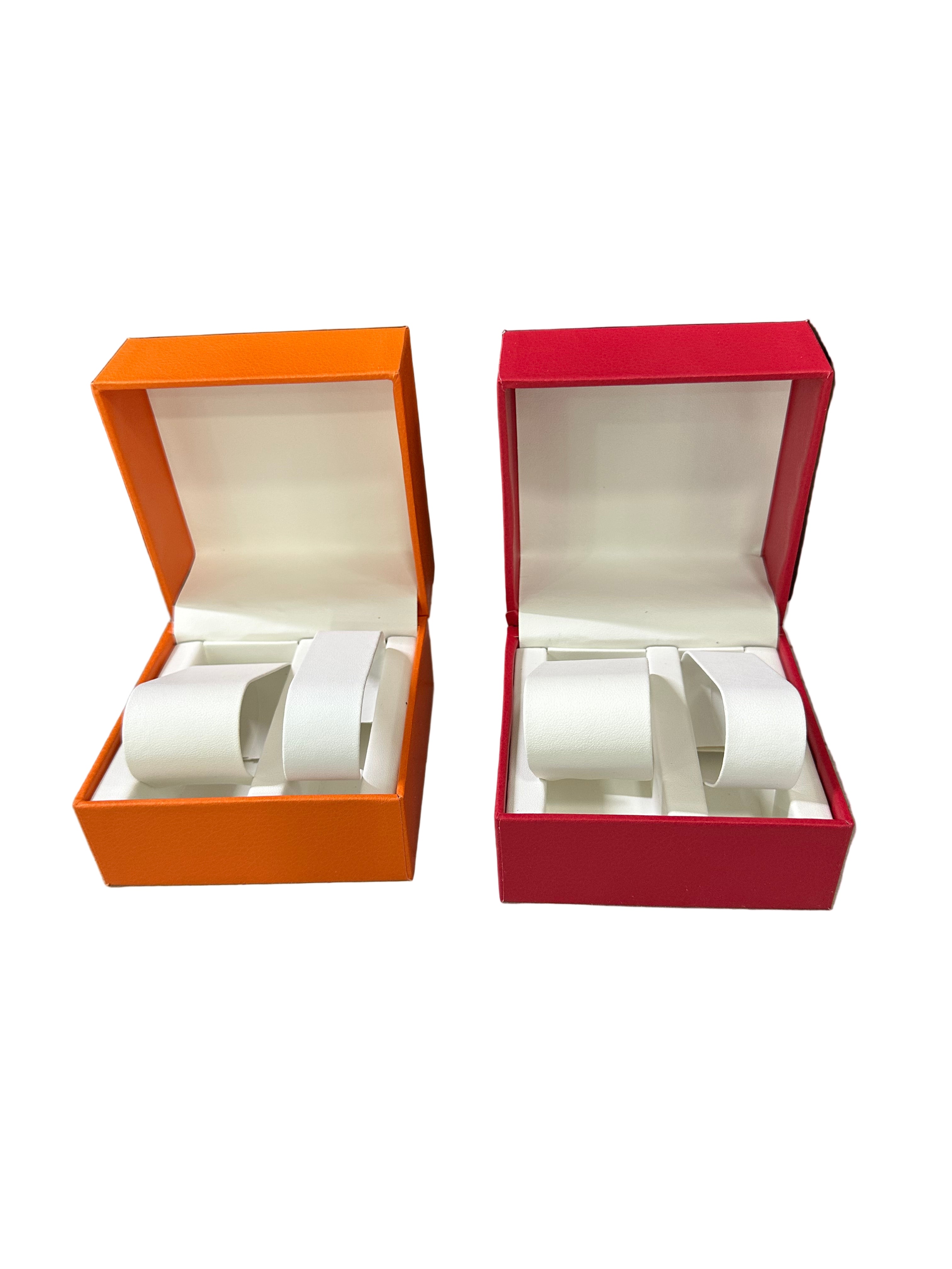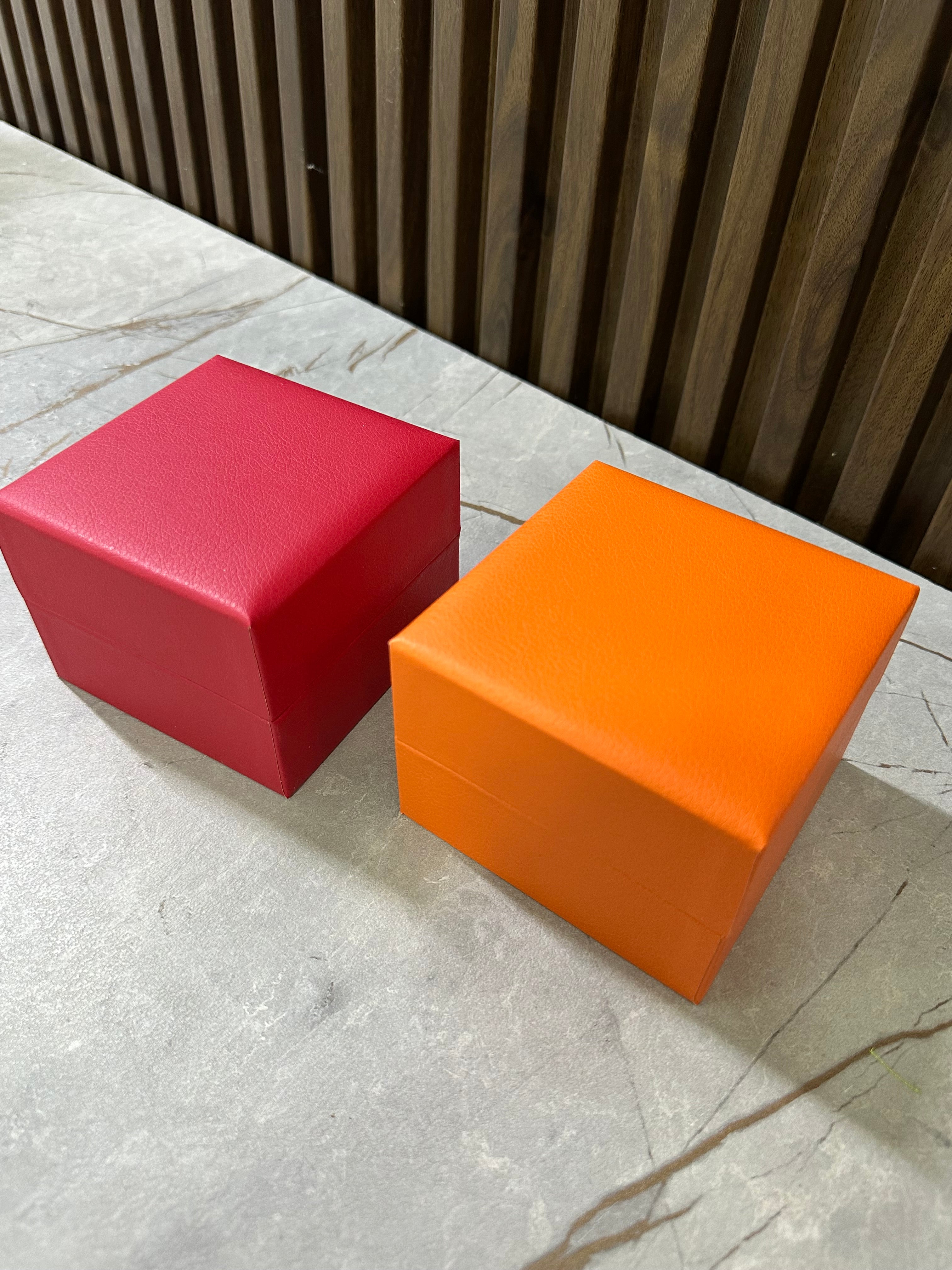 Kuti  për ora ose byzylykë, me brendësi të bardhë dhe mbajtëse të sigurt. Përshtatshme për dhurata apo ekspozim bizhuterish. Ngjyrat: E kuqe, e portokalli. Përmasa: 10 x 10 x H7.5...