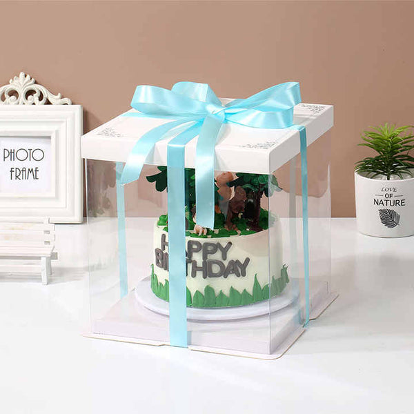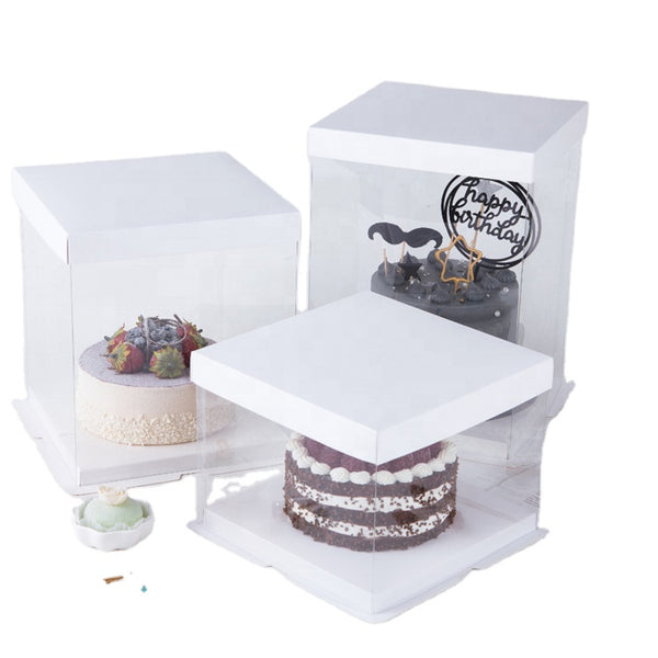 Kuti paketimi tortash karton + plastikë e tejdukshme, katrore e bardhë
