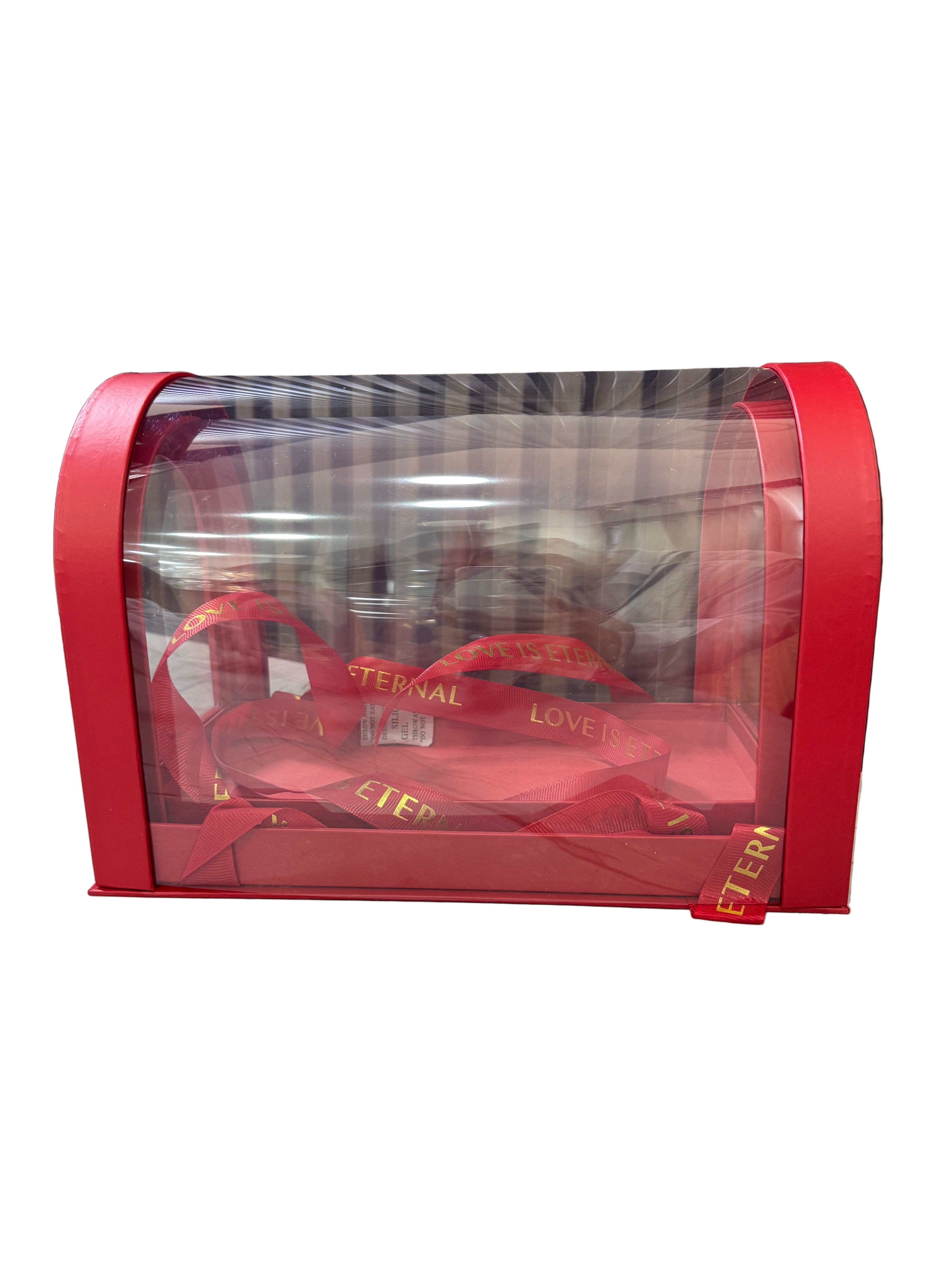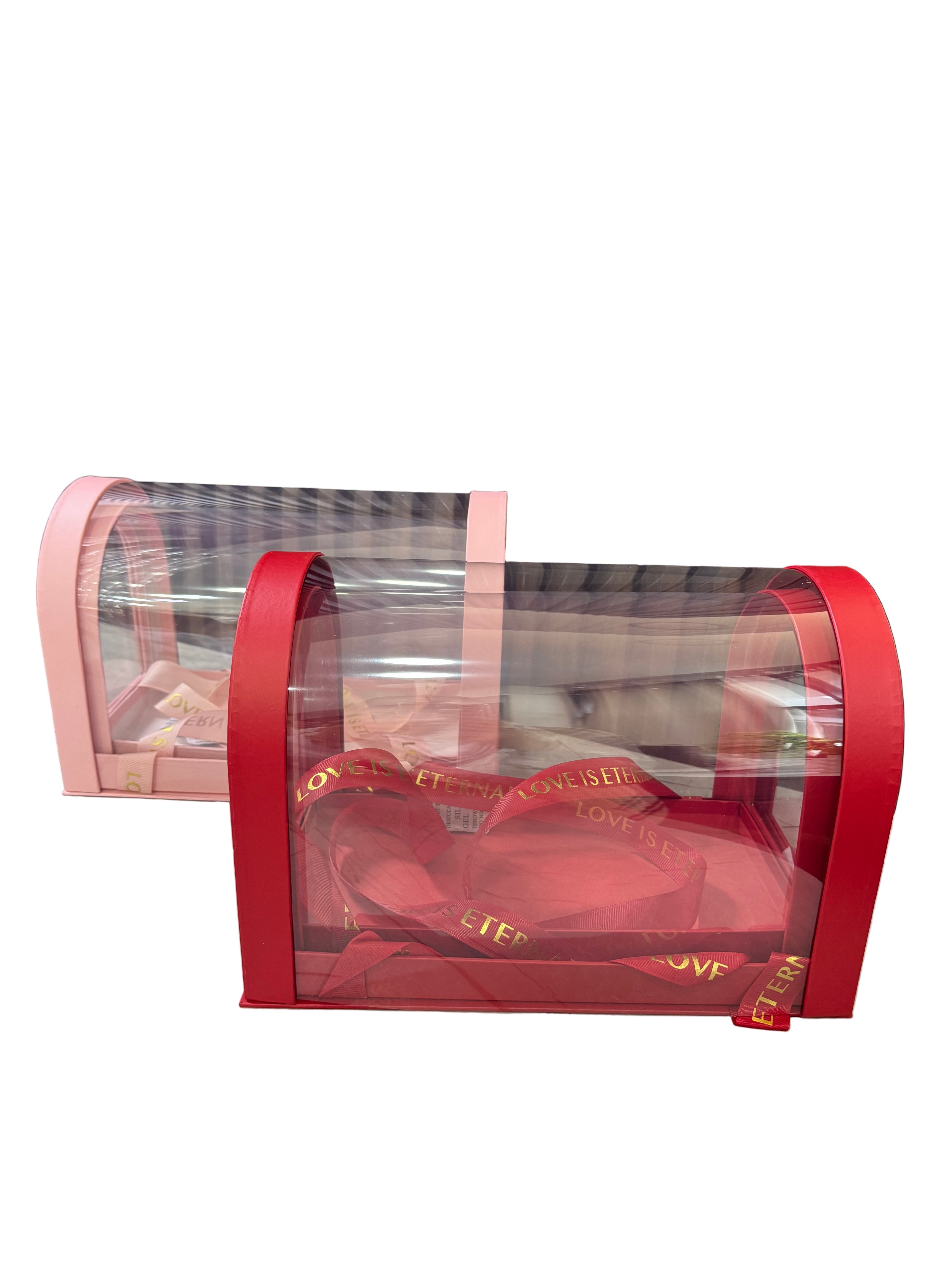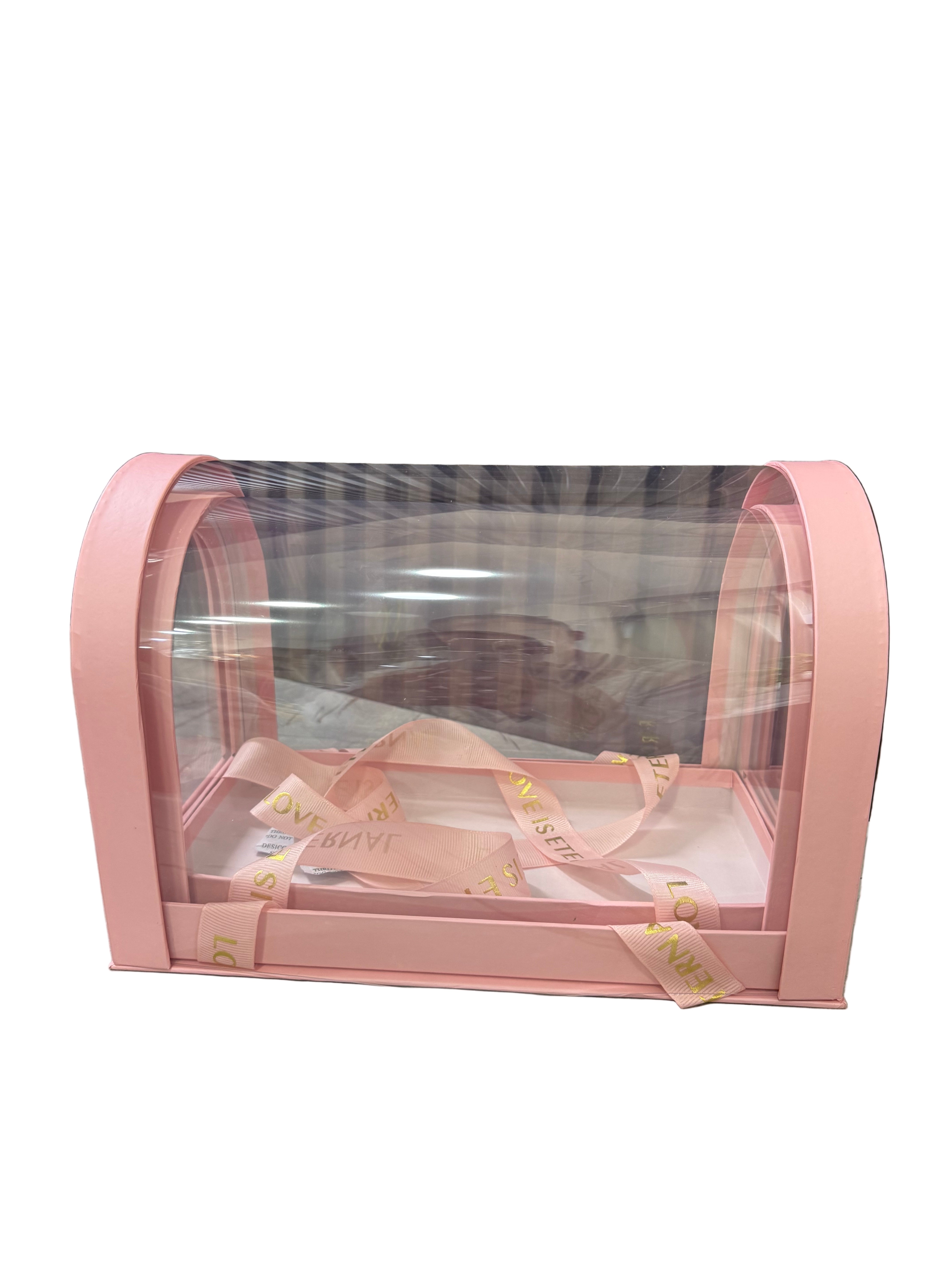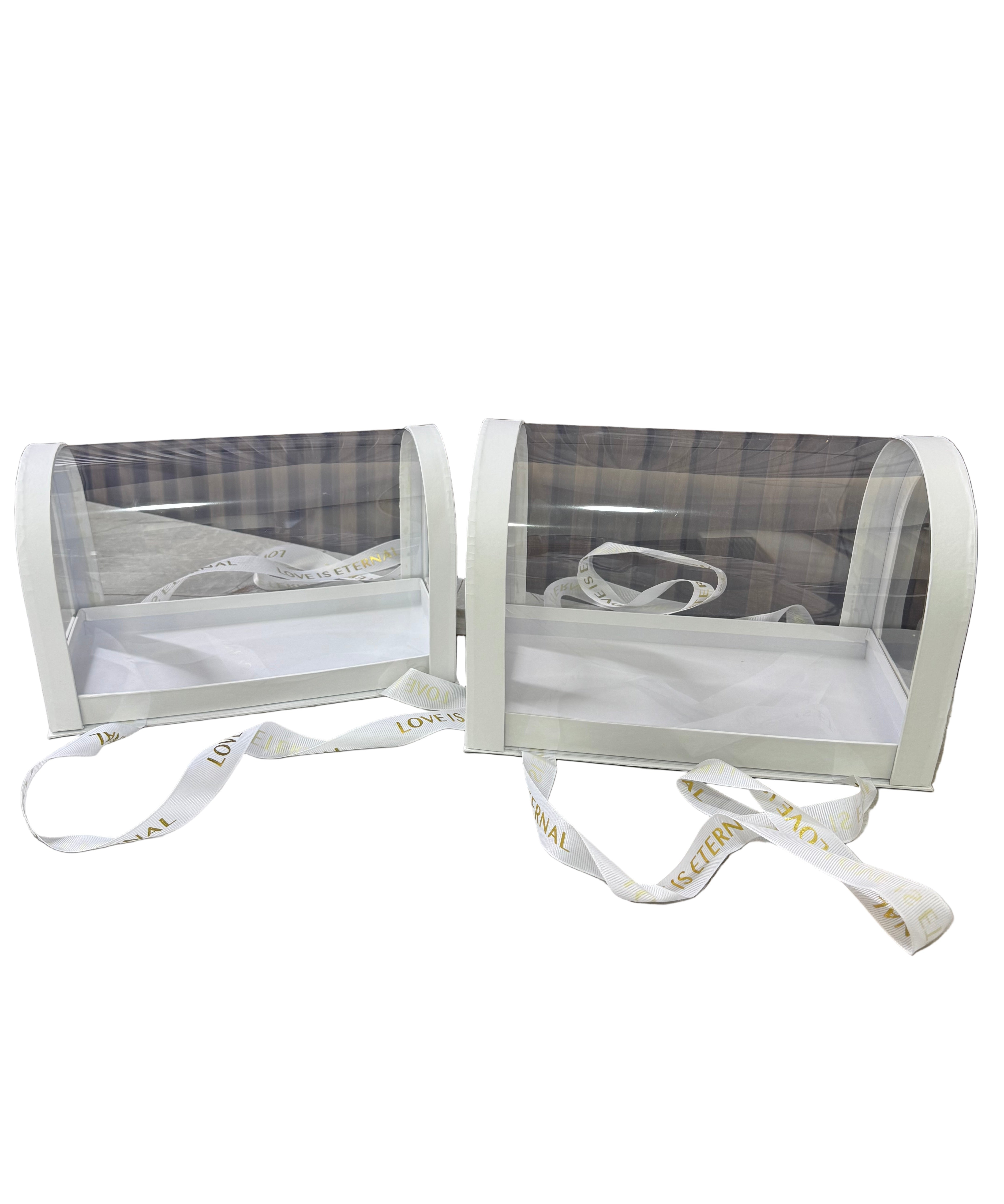 Kuti transparente për lule dhe ëmbëlsira, me dorezë dekorative “Love is Eternal”. E përshtatshme për dhurata, evente dhe transport  të ëmbëlsirave. Dizajn i thjeshtë, praktik dhe i qëndrueshëm për çdo...