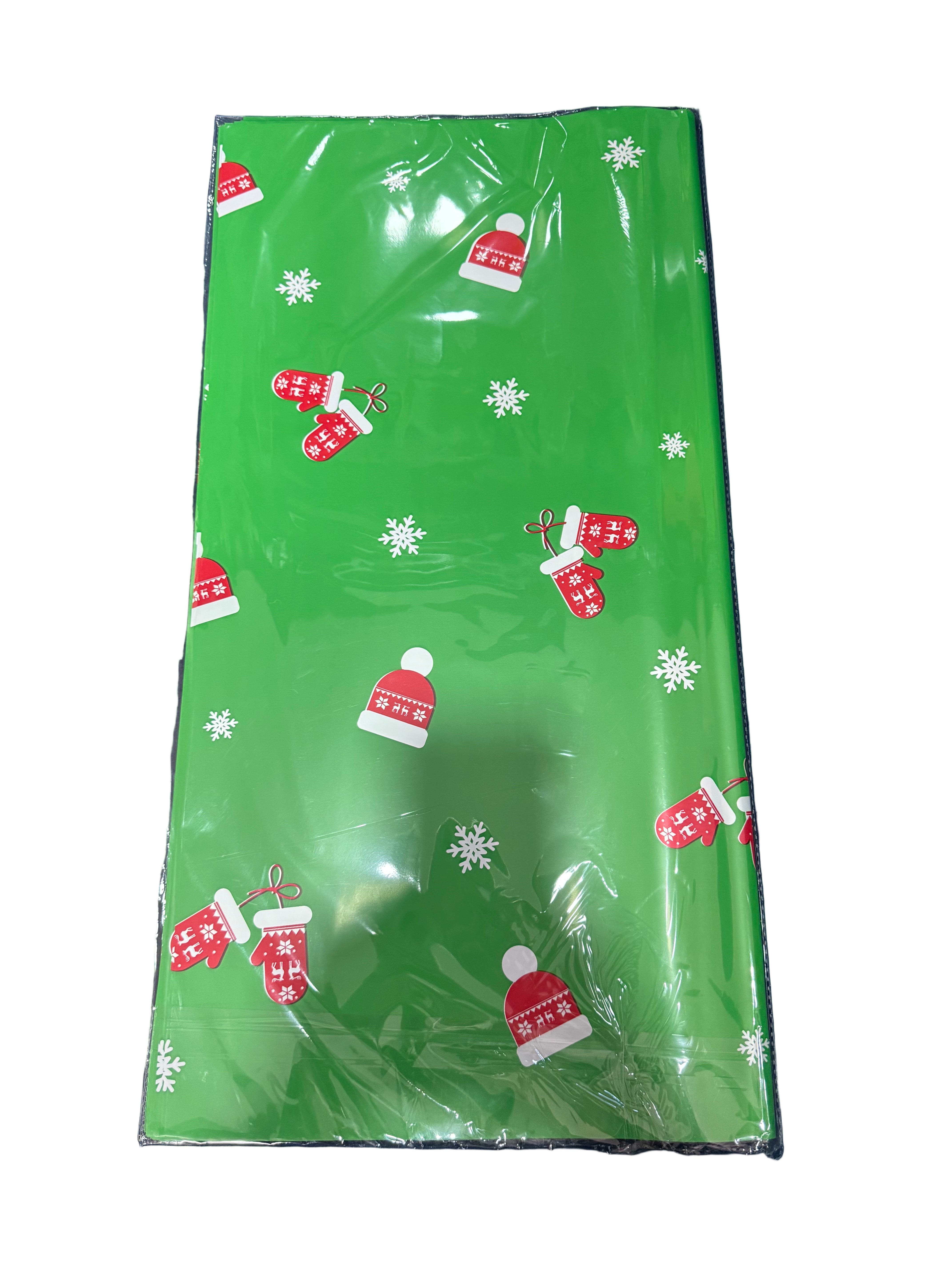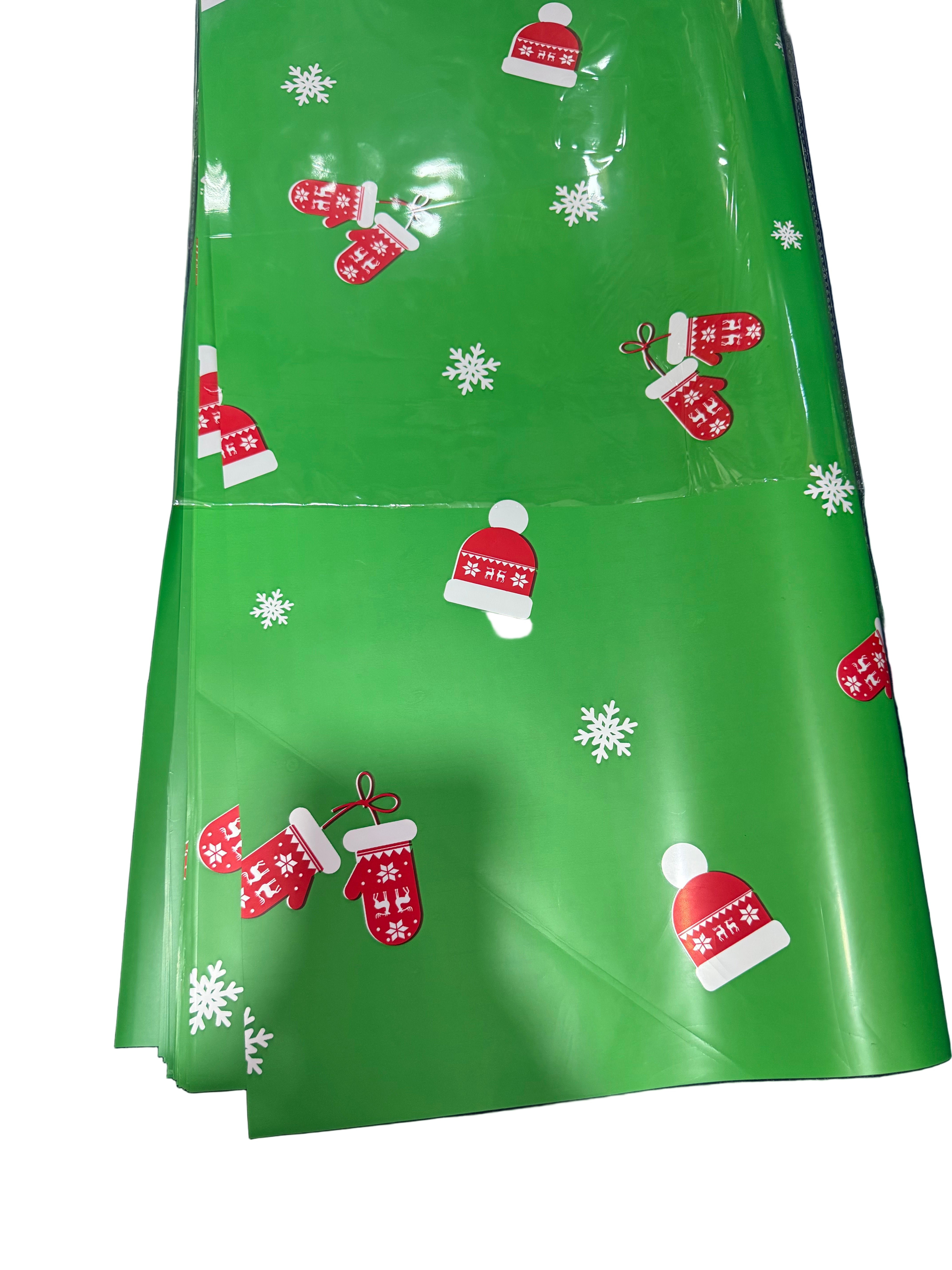 Letër paketimi festive jeshile me motive dimërore, kapuçë, doreza dhe borëbardha