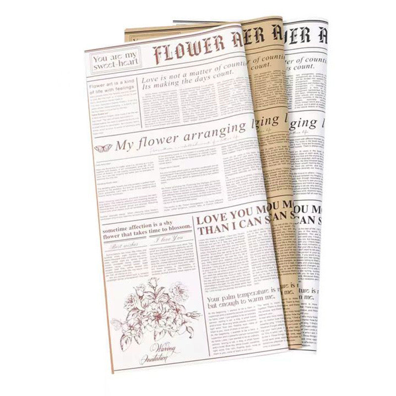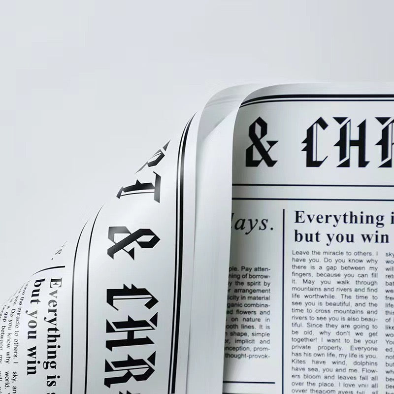 Letër paketimi me stil gazete vintage, ideale për dhurata, lule apo dekore kreative elegante, e qëndrueshme dhe me pamje unike retro. Ngjyrat: Kafe, bardhë, zezë, nudë, kuqe. Dizajni: Stil gazrte....