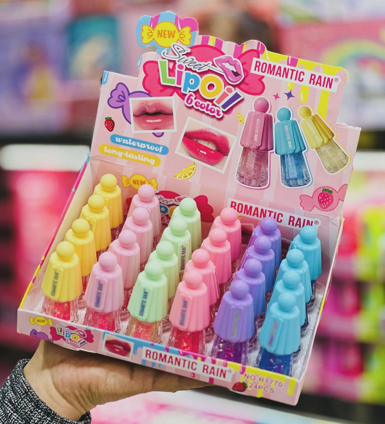 Lip oil me 6 nuanca Romantic Rain; Ngjyra: Blu, jeshile, e verdhë, lejla, rozë, uthull; 24 copë