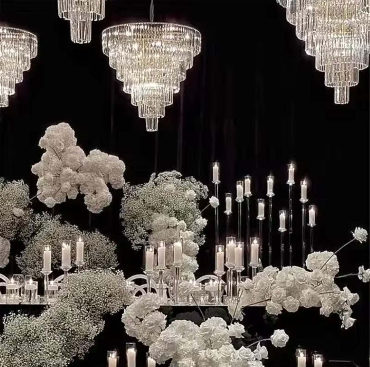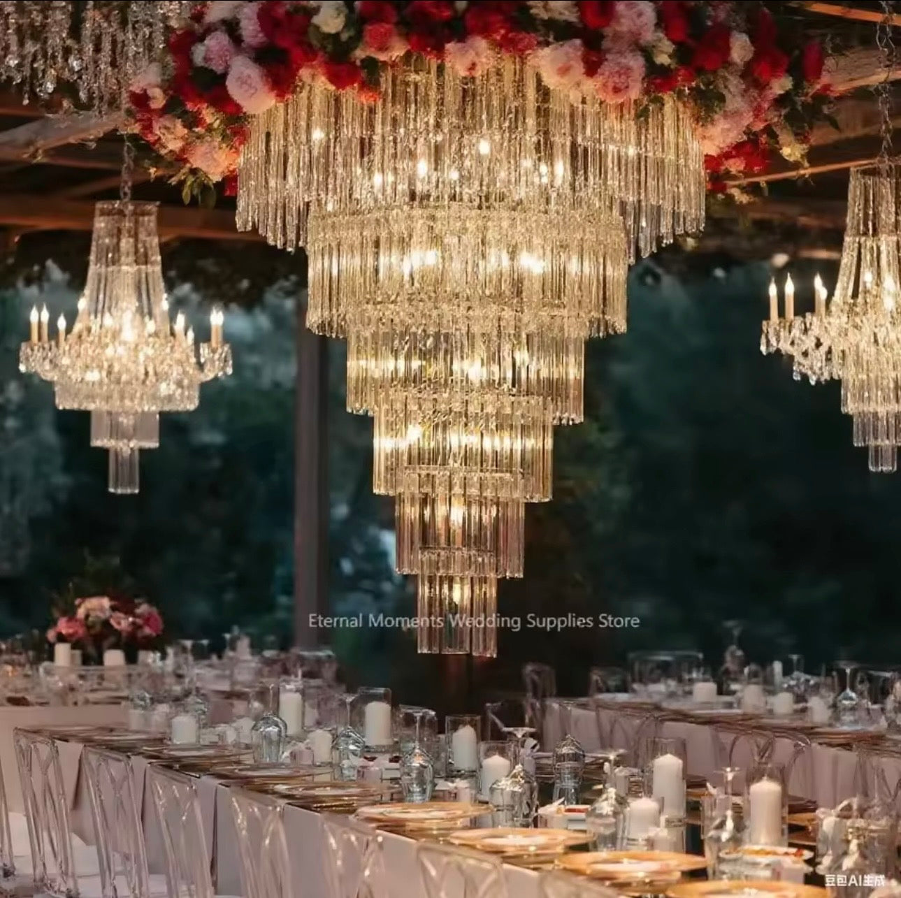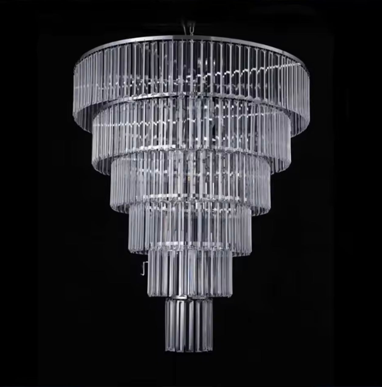 Llambadar dekorativ me kristale të varura, i përshtatshëm për ndriçim dhe dekor ambienti. Materiali: Qelq. Ngjyra: Transparente. Përmasat: 83 x 83 x 21 cm.