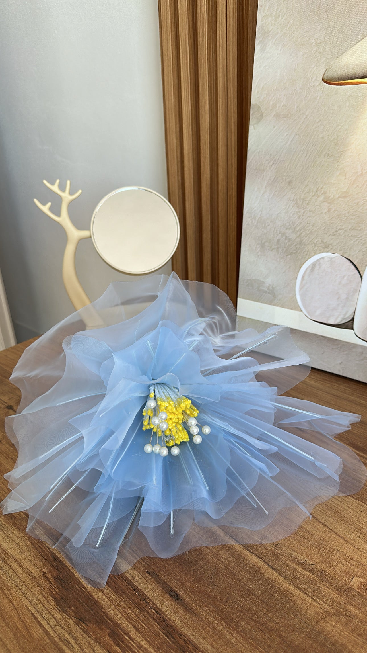 Lule dekorative artificiale , me petale të mëdha prej materiali të lehtë e transparent që i jep një pamje elegante dhe romantike. Në qendër ka detaje zbukuruese me ngjyrë të...