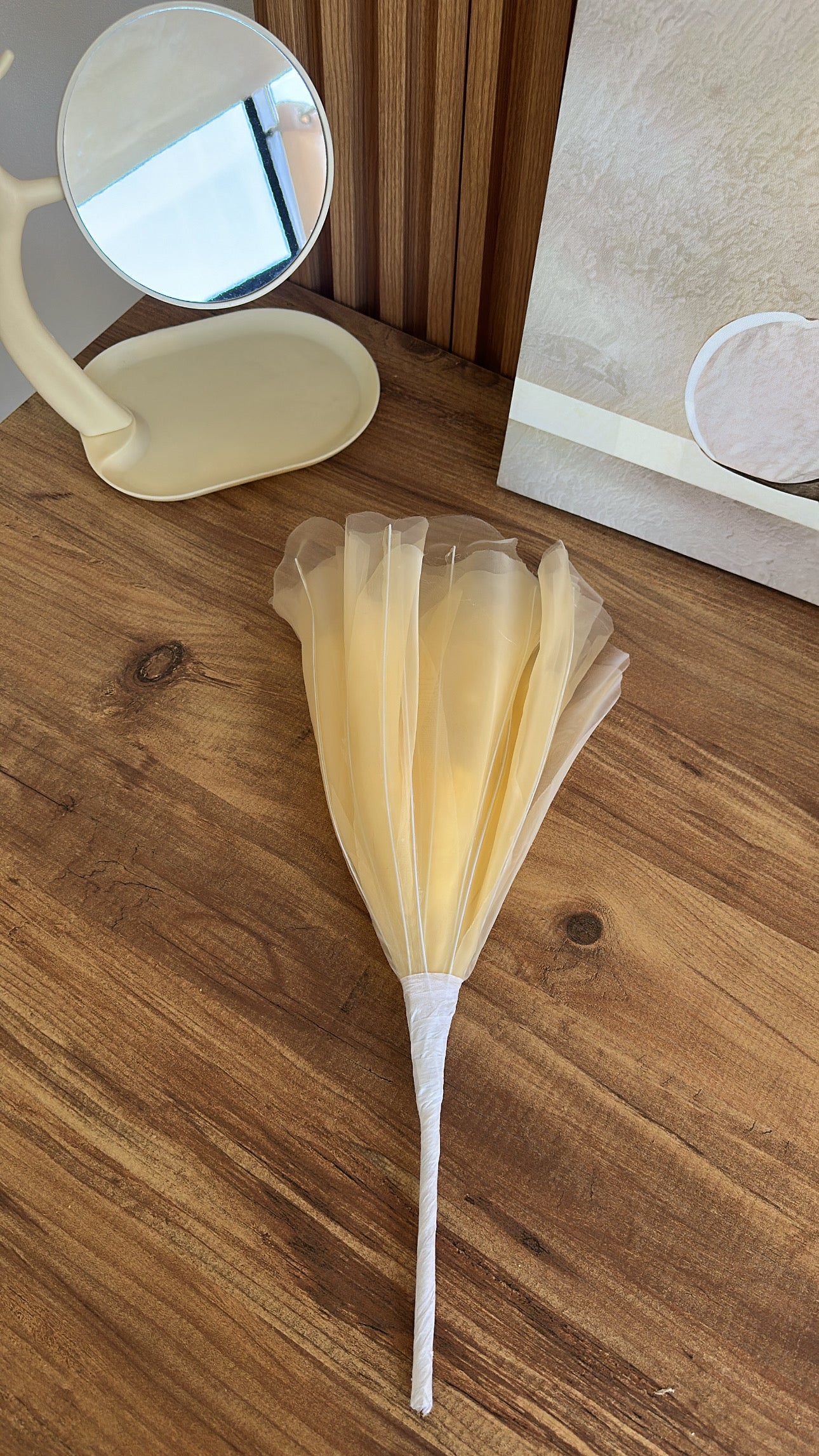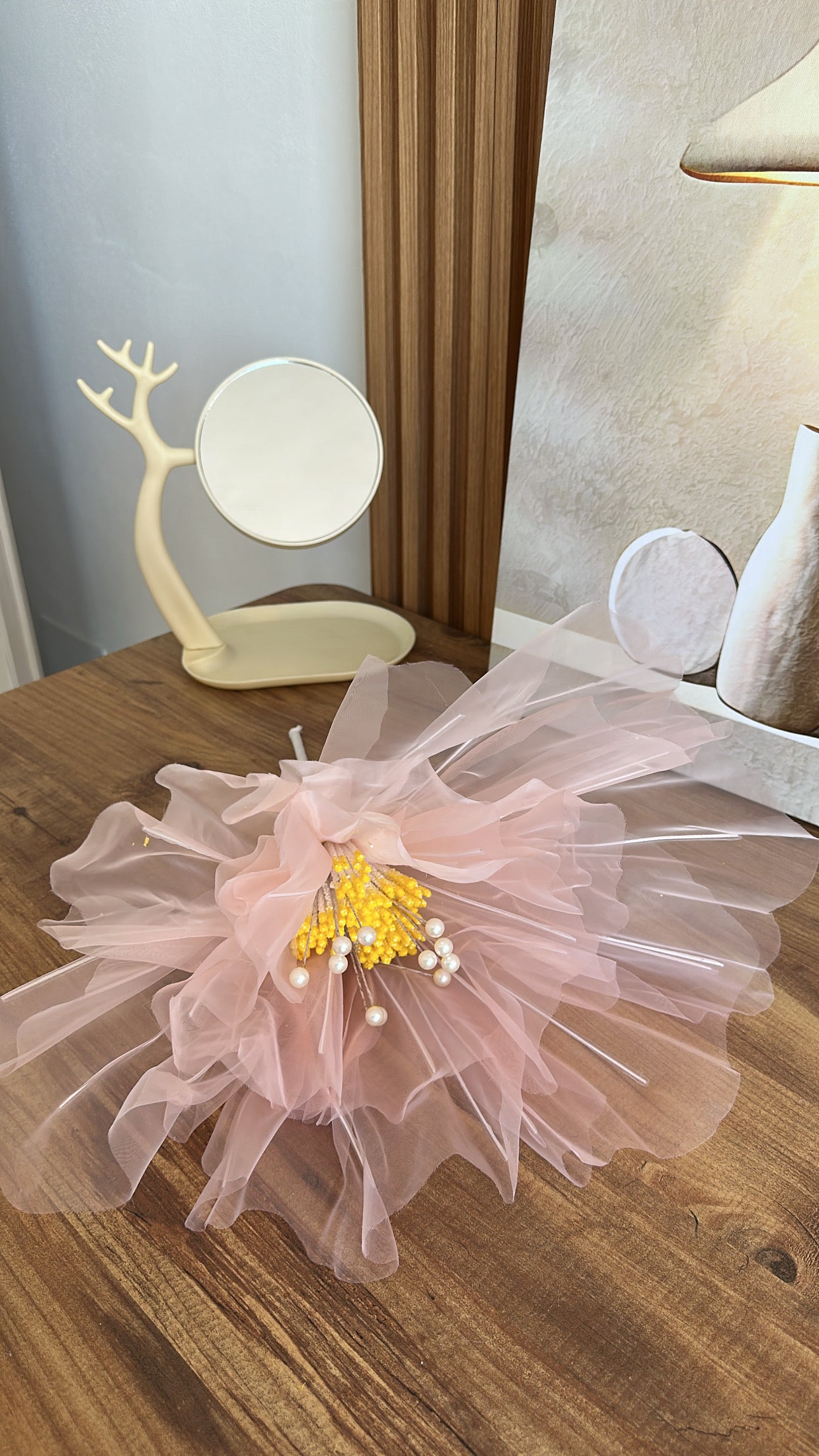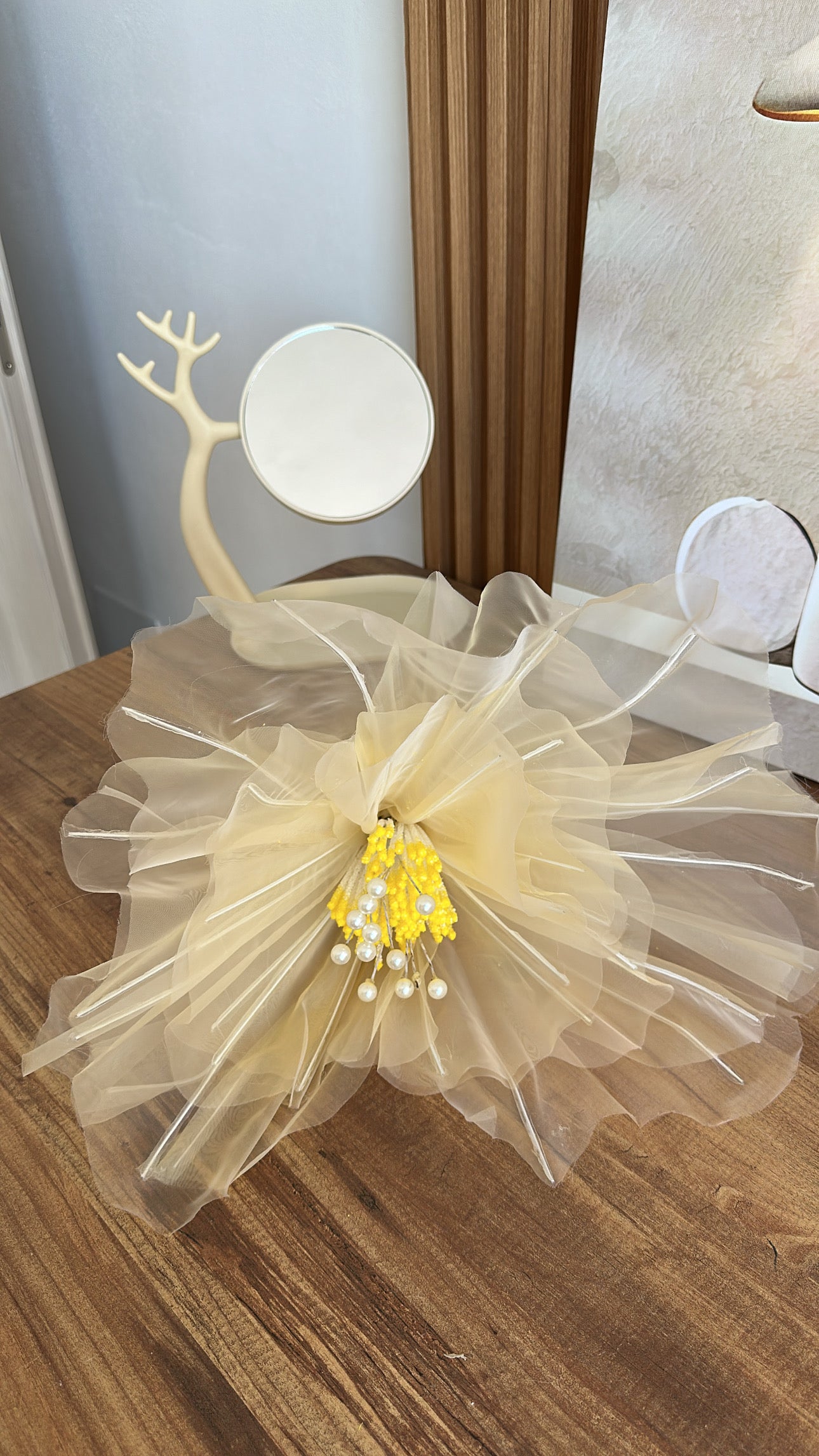 Lule dekorative prej tyli të punuara me dorë, me gonxhë të verdhë me perla