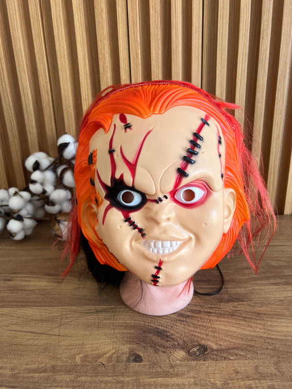 Materiali: Komod dhe i ajrosshëm.  Rripi i rregullueshëm për përshtatje të sigurt. Perdorimi: Festa, evente, performanca, fotografi.  Opsione për fëmije dhe të rritur.  Ngjyra: Portokalli. Personazhi:Chucky