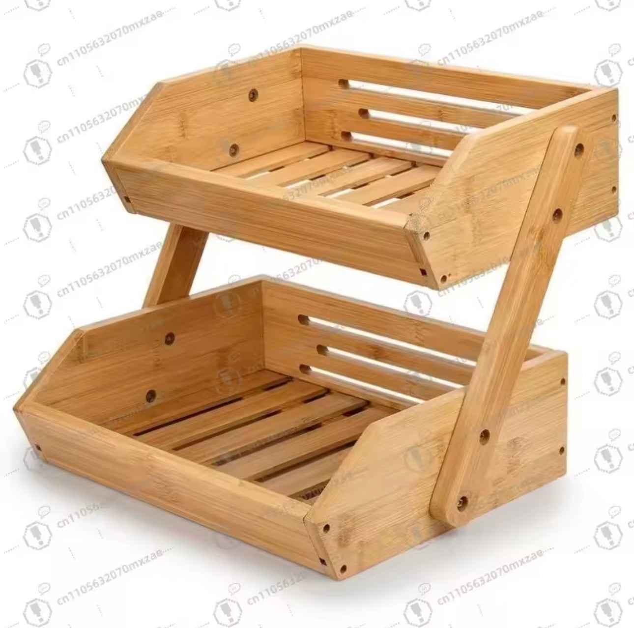 Mbajtëse frutash prej druri me dy nivele, ideale për organizimin dhe ruajtjen e frutave në kuzhinë. Materiali: Druri. Ngjyra: Natyrale. Me 2 kate.