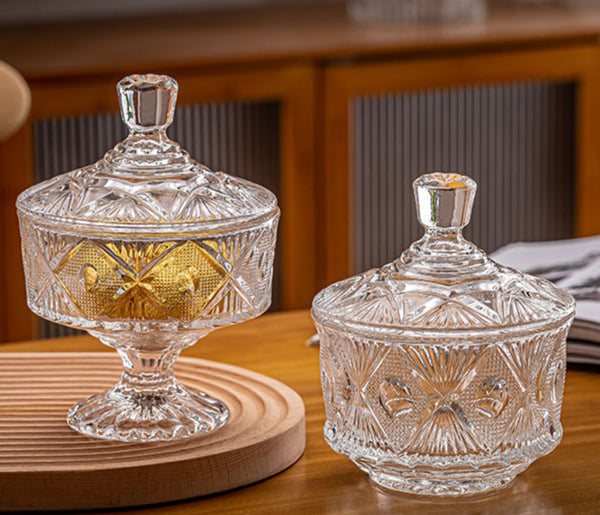 Mbajtëse qelqi me kapak për karamele; me detaje formazh gjeometrike; Cilësi e lartë; Përmasat si në foto:
