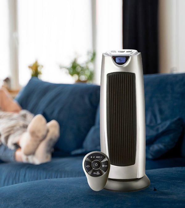 Ngrohëse inteligjente Ceramic Tower Heater me ventilator, 2 nivele shpejtësie dhe telekomandë. Praktik, me mbrojtje ndaj mbinxehjes dhe teknologji moderne