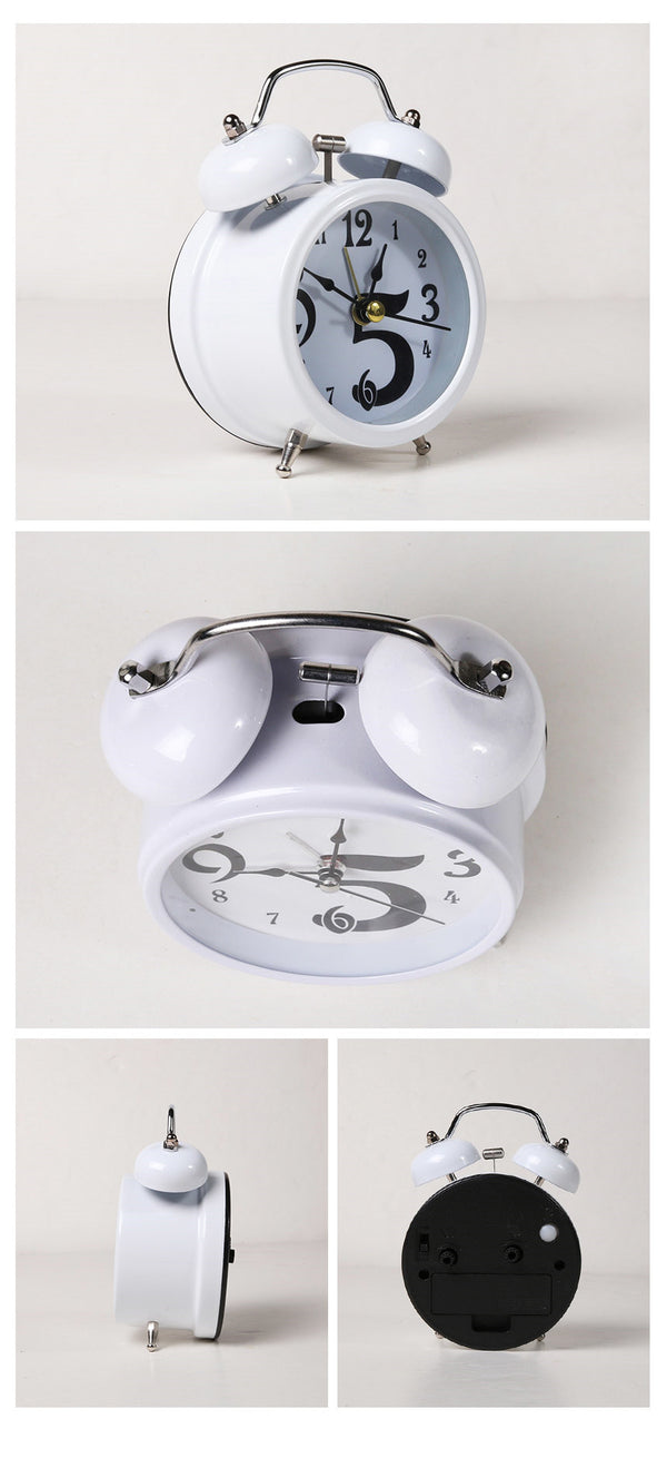 Orë me zile stil modern me numra të mëdhenj; Materiali: Plastike; Ngjyrat: E bardhë, e zezë, jeshile; Përmasa: 13 cm