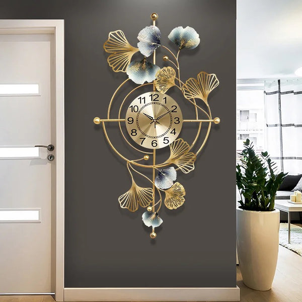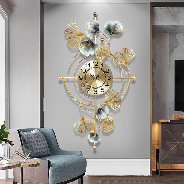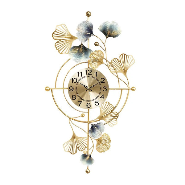Orë murale gold material metalik me lule; Përmasa: 86 x 49 cm