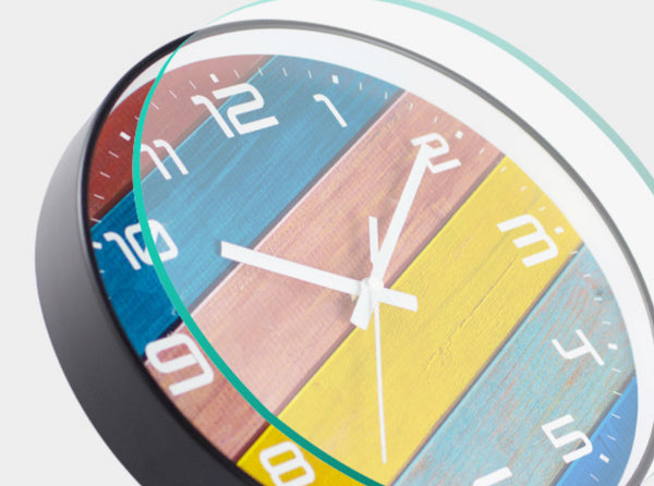 Orë muri dekorative me printe druri ngjyra ngjyra; Materiali: Plastik; Përmasat si në foto: