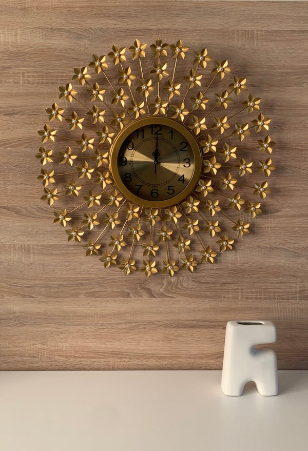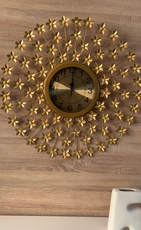 Specifikim Materiali: metalik Ngjyra: gold Diametri: 70cm Diametri i orës: 27cm