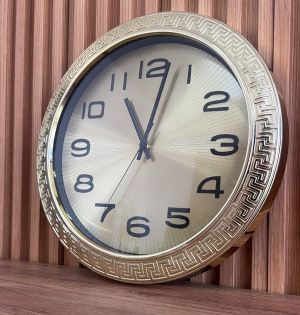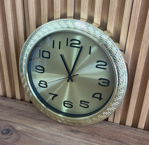Orë muri rrethore dekorative gold, me vija dhe konture të punuar me diametër 35 cm