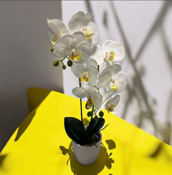 Orkide artificiale me vazo; Ngjyra: E bardhë; Gjatësi: 42 cm