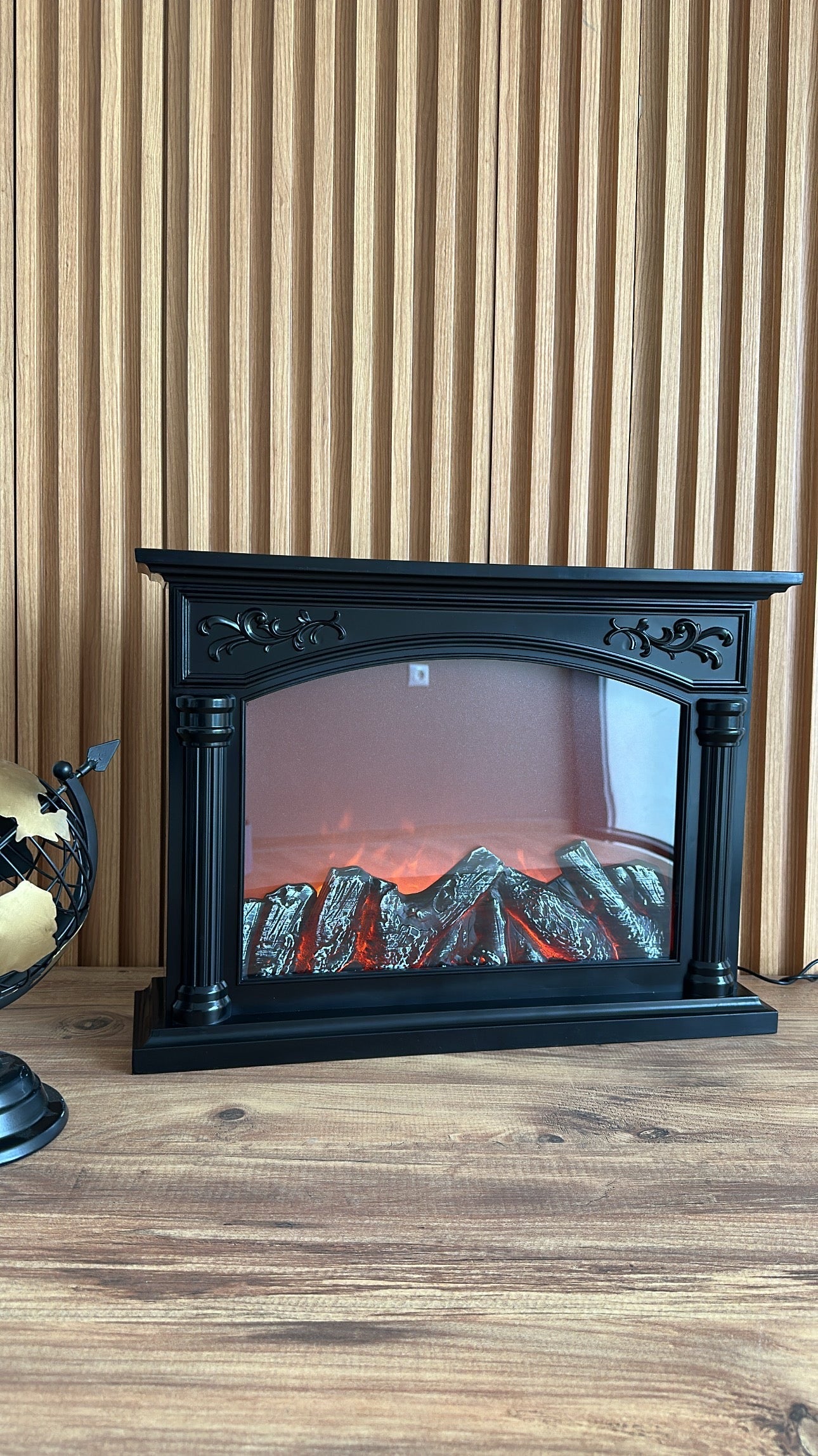 Oxhak Led dekorativ, me dizajn elegant klasik në ngjyrë të zezë. I përbërë nga detaje të punuara bukur në pjesën e sipërme dhe anësore, ofron një pamje realiste të flakëve...