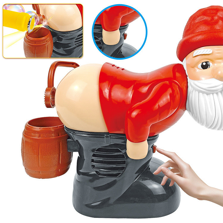Babagjysh argëtues që fryn flluska me drita dhe muzikë – krijon atmosferë festive dhe shumë argëtim për fëmijë. Me bateri. Ngjyra: E kuqe. Përfshin: Babagjyshin që fryn flluska, 1 fuci...