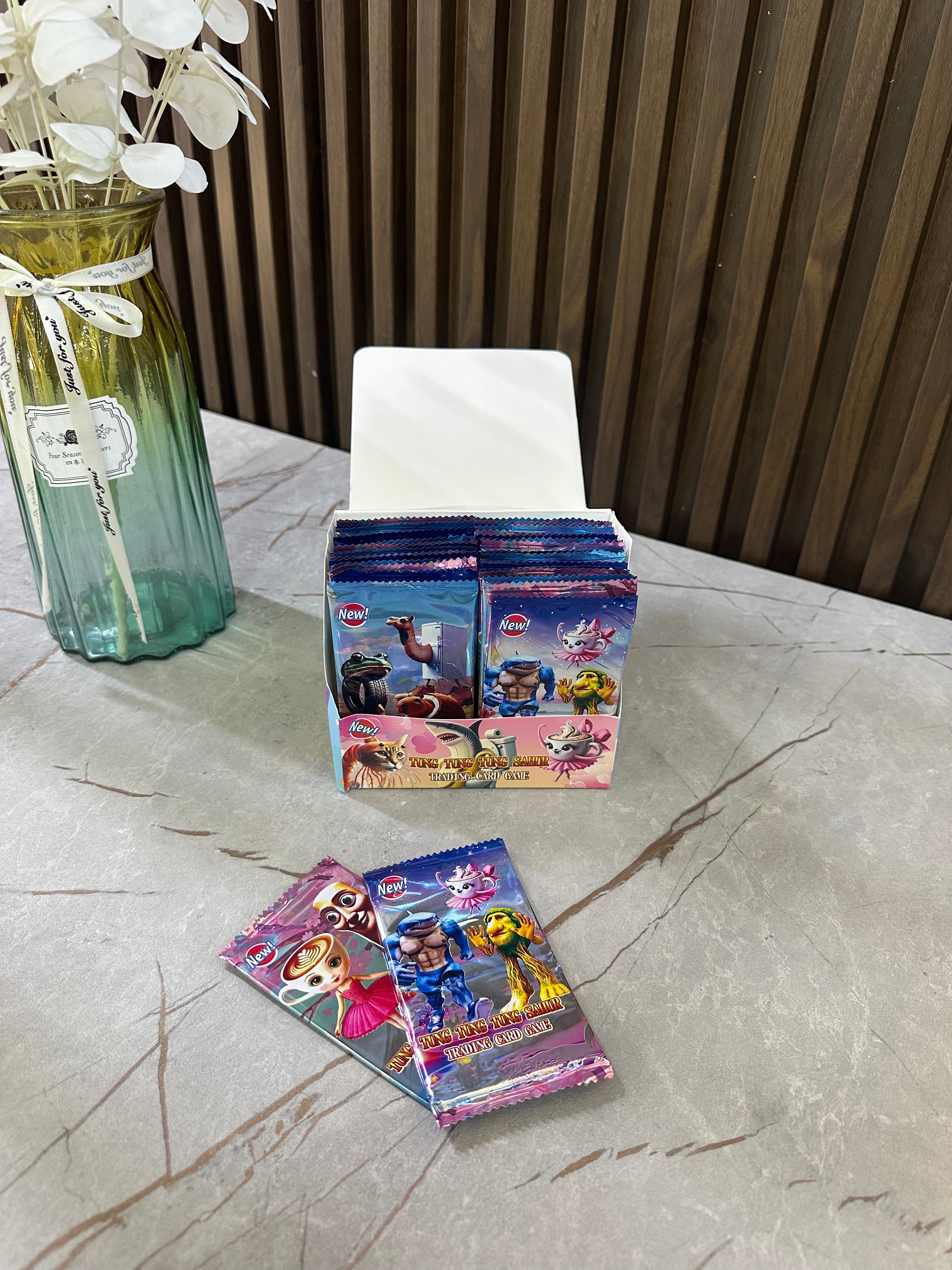 Pako suprizë me karta lojë. Personazhe të ndryshme për fëmijë. Ideale për lojë dhe koleksion.