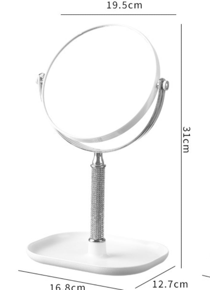 Pasqyrë kozmetike me xixa me mbajtëse make up-i; Materiali: Plastike; Ngjyra: E bardhë, rozë; Përmasat si në foto: