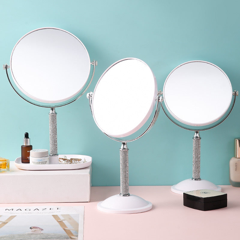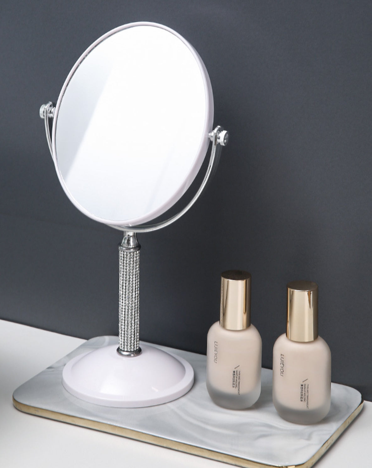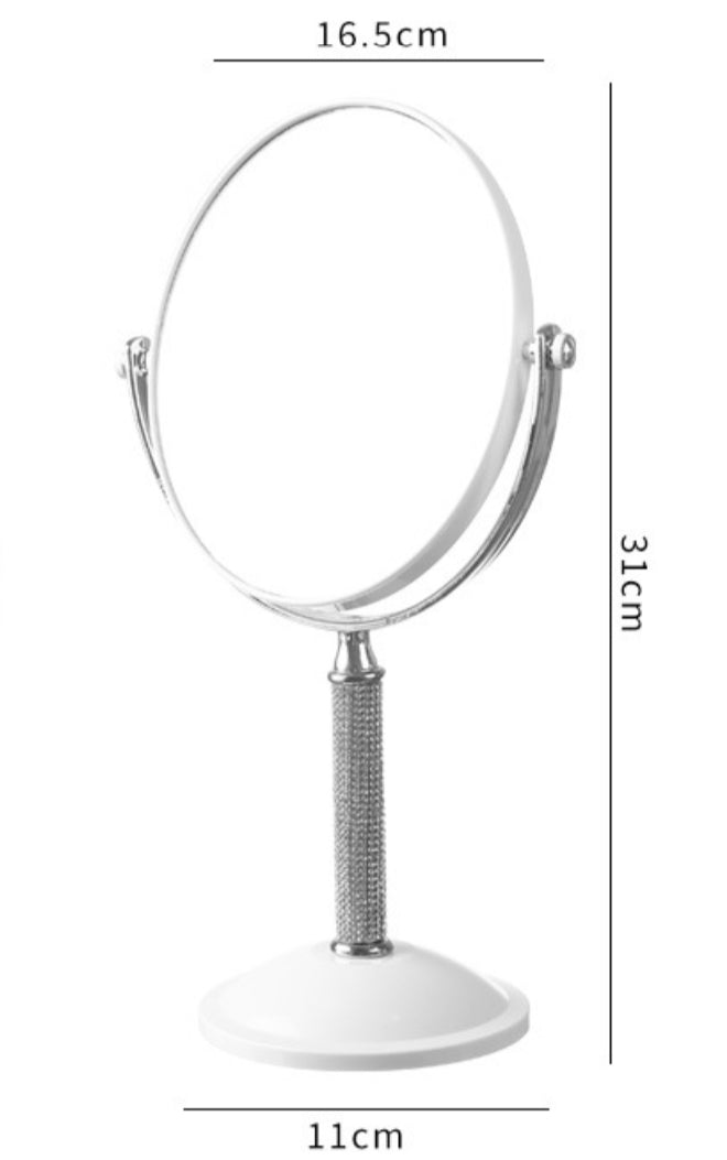 Pasqyrë me xixa në formë rretore për të bërë make up; Materiali: Plastike; Ngjyra: Rozë, e bardhë; Përmasat si në foto: