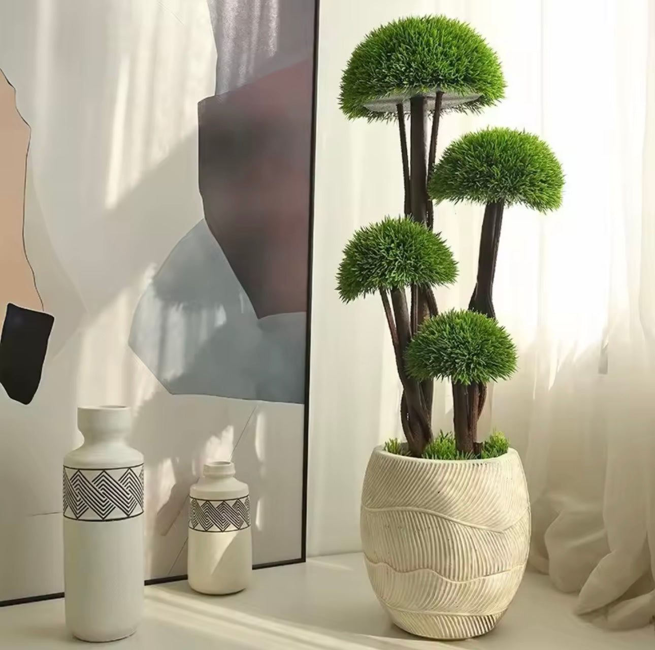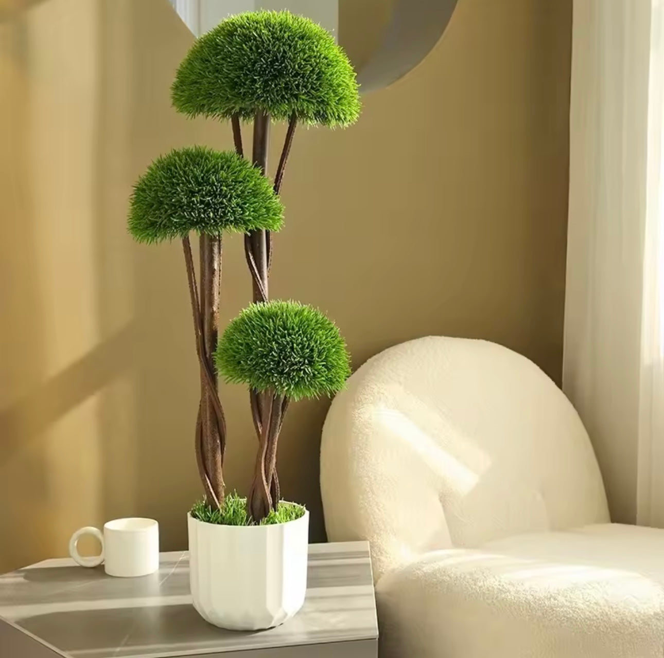 Degë artificiale dekorative me formë sferike dhe trungje të përdredhur, vendosur në vazo, Jep pamje të gjelbër natyrale çdo ambienti. Set: 3 pcs. Ngjyra: E jeshile. E pershtatshme për shtëpi,...